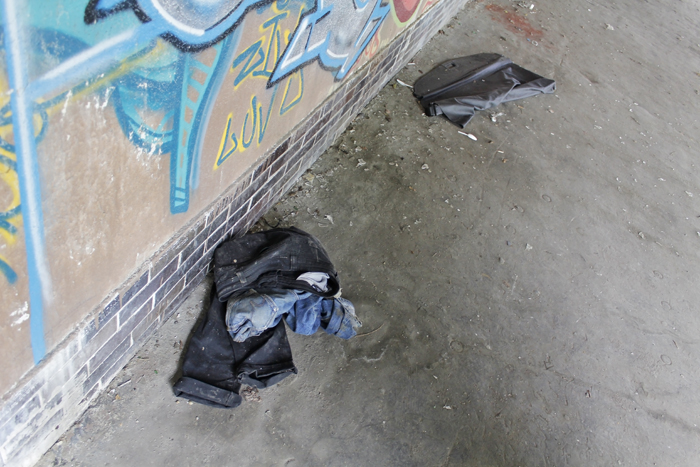 Okoloidúci sa náhlili prejsť okolo voľne pohodených odpadkov a množstva vtáčieho trusu po holuboch, ktoré si tu našli bezpečné miesto na hniezdenie.