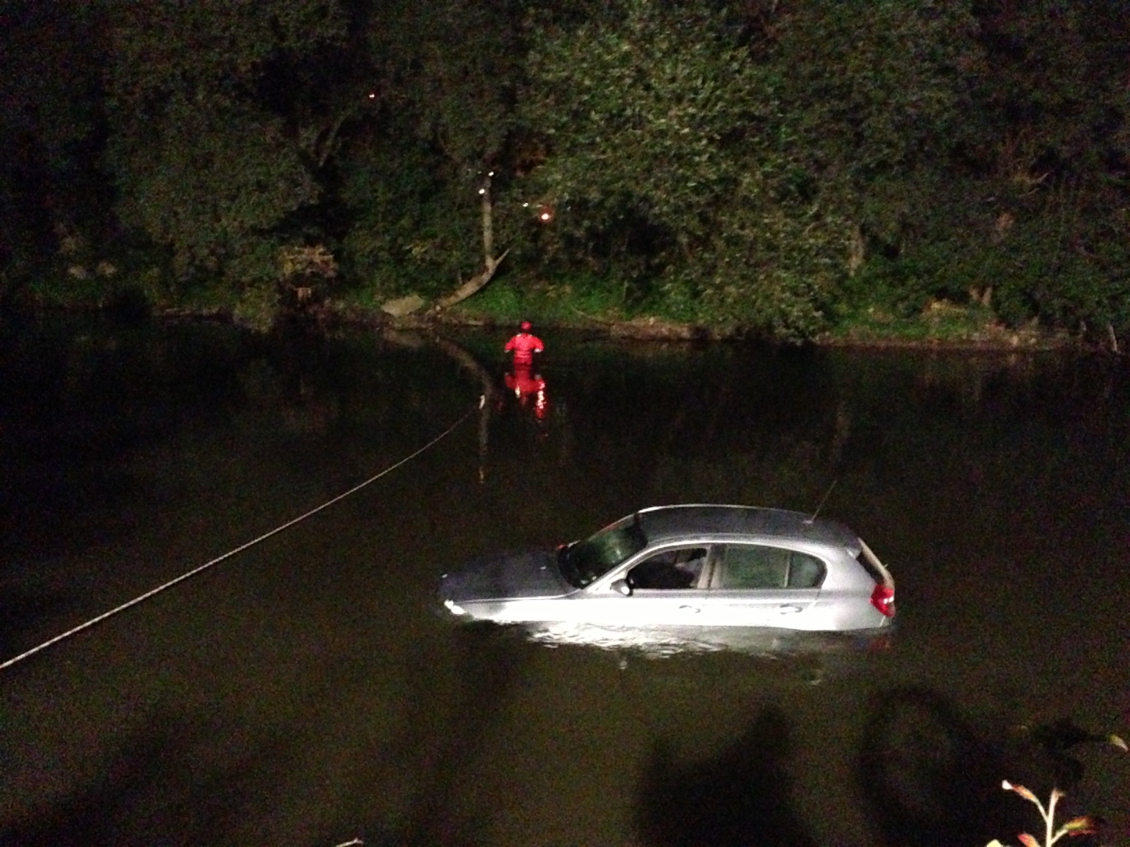 Ľudia na brehu tak mali nečakané nočné divadlo, keď v Hrone plávalo niekoľko desiatok metrov osobné auto. To napokon vytiahli na breh privolaní príslušníci HaZZ.
