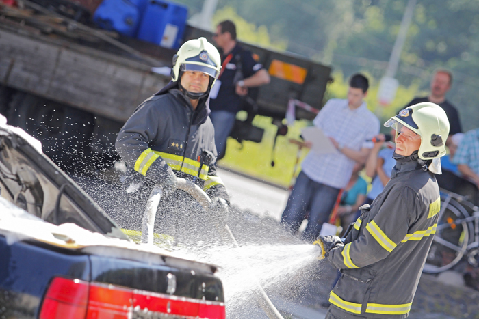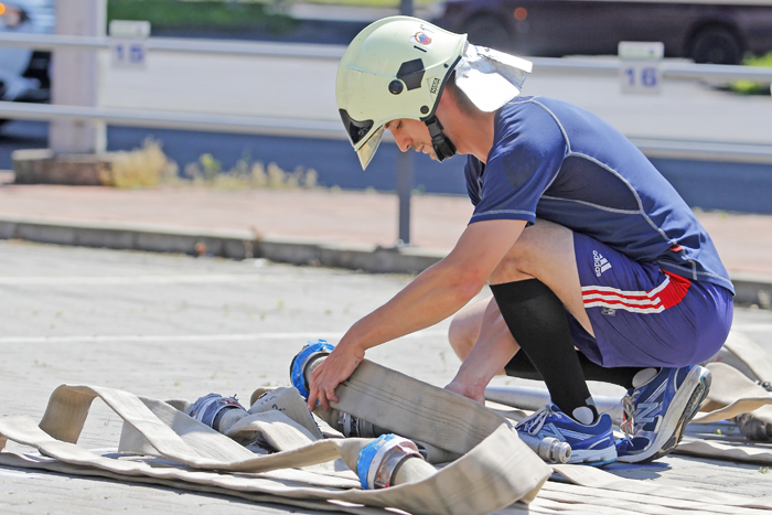 Hasičské tímy štartovali na dvoch paralelných dráhach. V prvej disciplíne súťažiaci rozvinuli osmičku stočených hadíc dĺžky 80 metrov a potom stočili dve hadice do kotúča. V druhej disciplíne súťažiaci na prekážkovej dráhe 6-kilovým kladivom stokrát 100-krát obojruč udierali do „hamerboxu“, 80-kilovú figurínu prenášali do vzdialenosti 60 metrov a za pomoci lana prekonávali trojmetrovú bariéru.