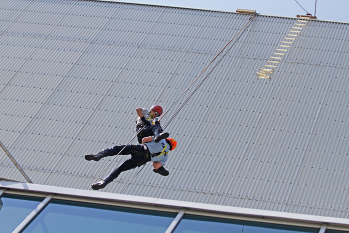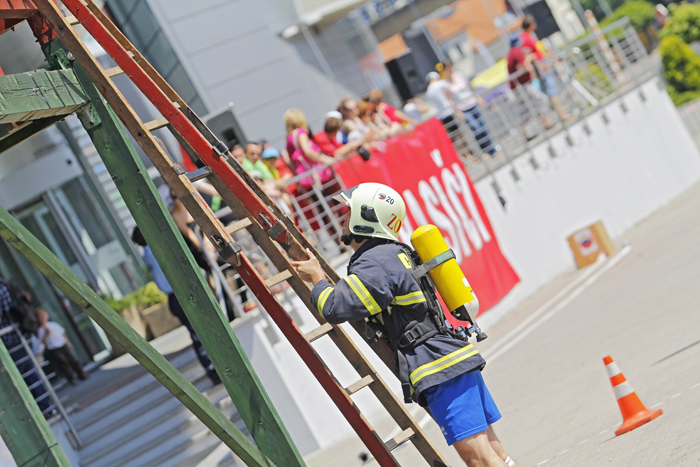 V tretej disciplíne prekonávali hasiči 10-metrovú vežu pomocou rebríkov a po schodoch so záťažou 20-kilových kanistrov v oboch rukách, aby potom pomocou lana vytiahli dve 25-kilové hadice a nakoniec na prúdnicu naskrutkovali hubicu. V poslednej štvrtej disciplíne súťažiaci vybehli po 400 schodoch na najvyššie 22 podlažie EBC.