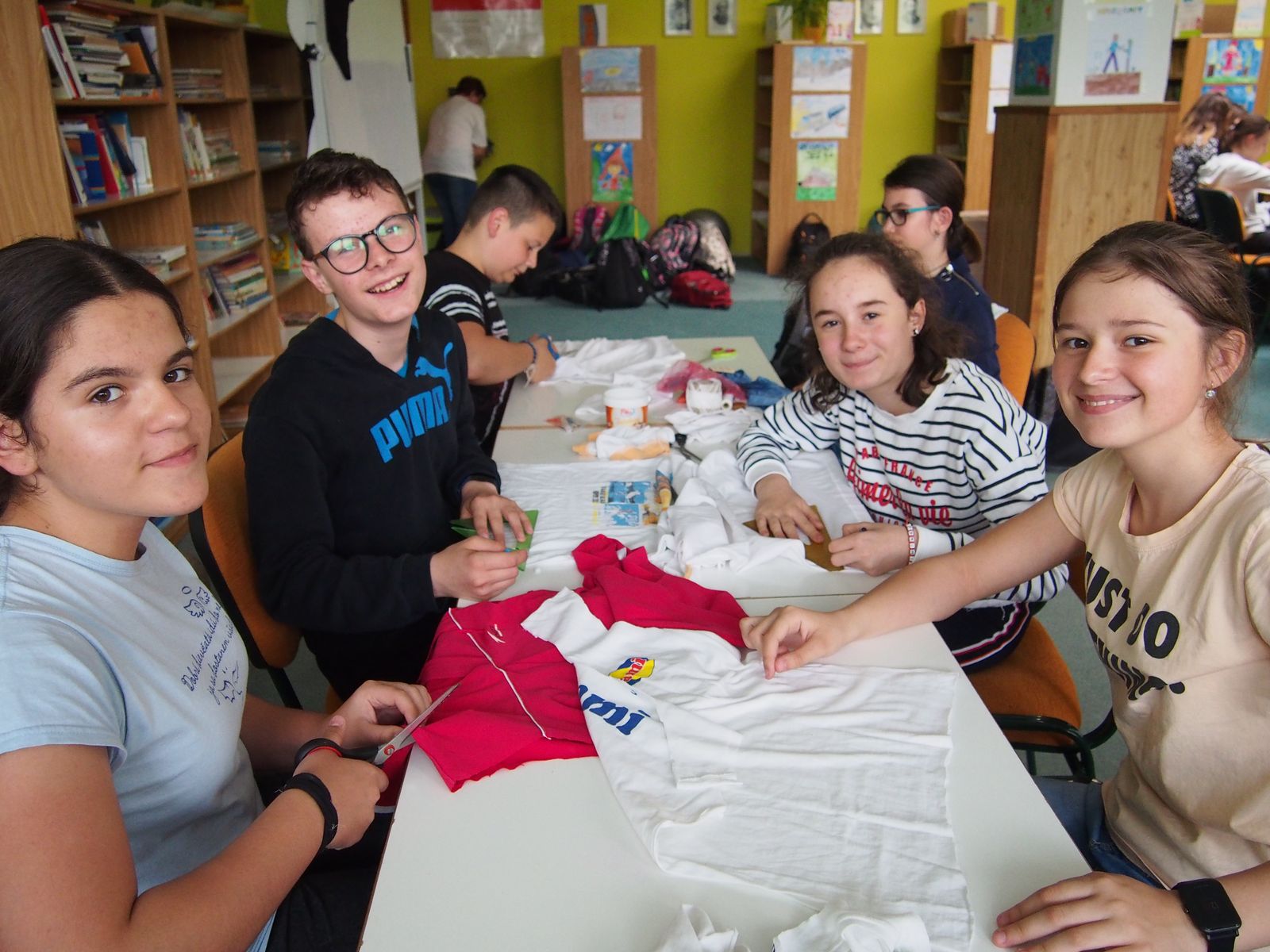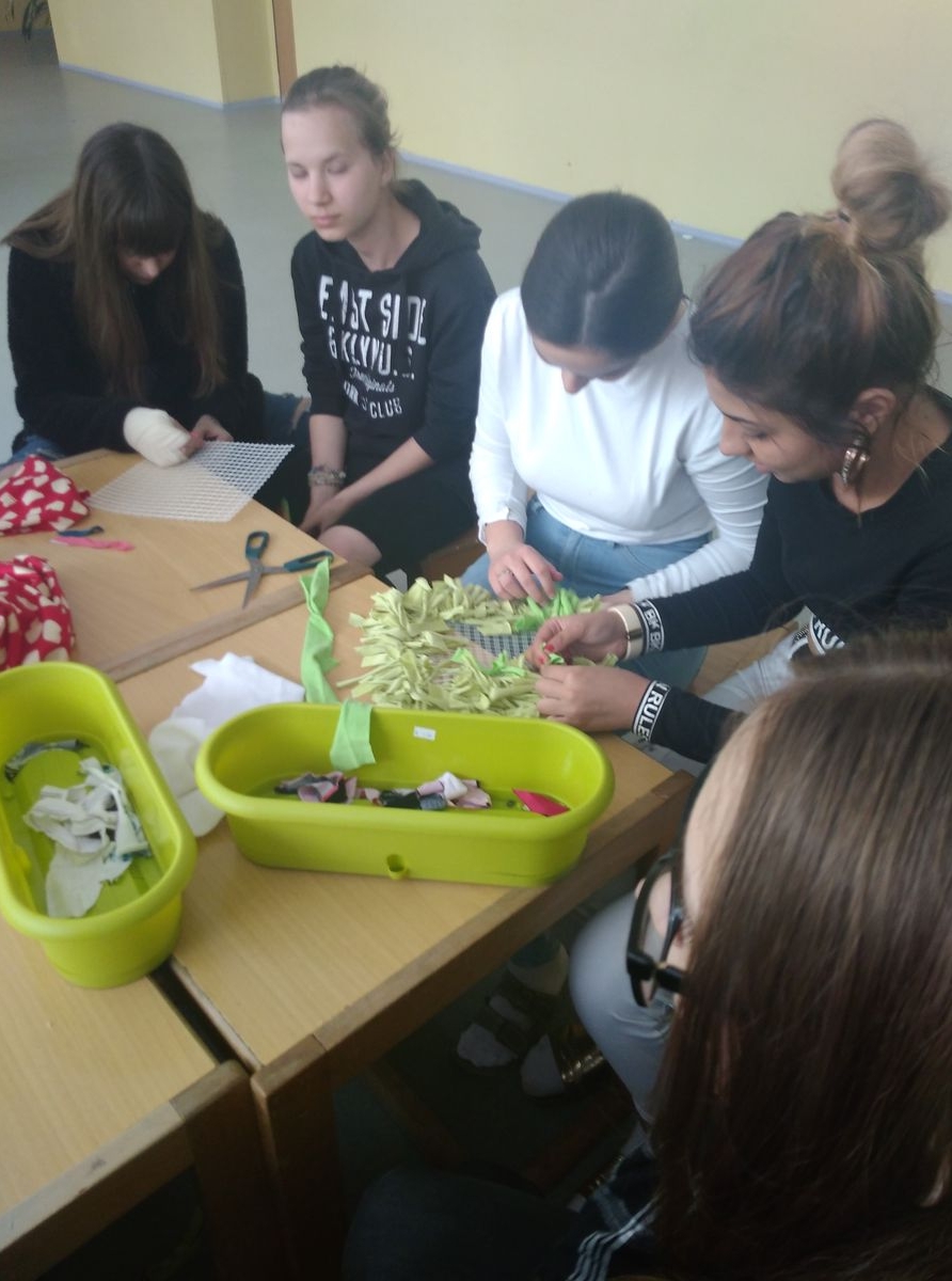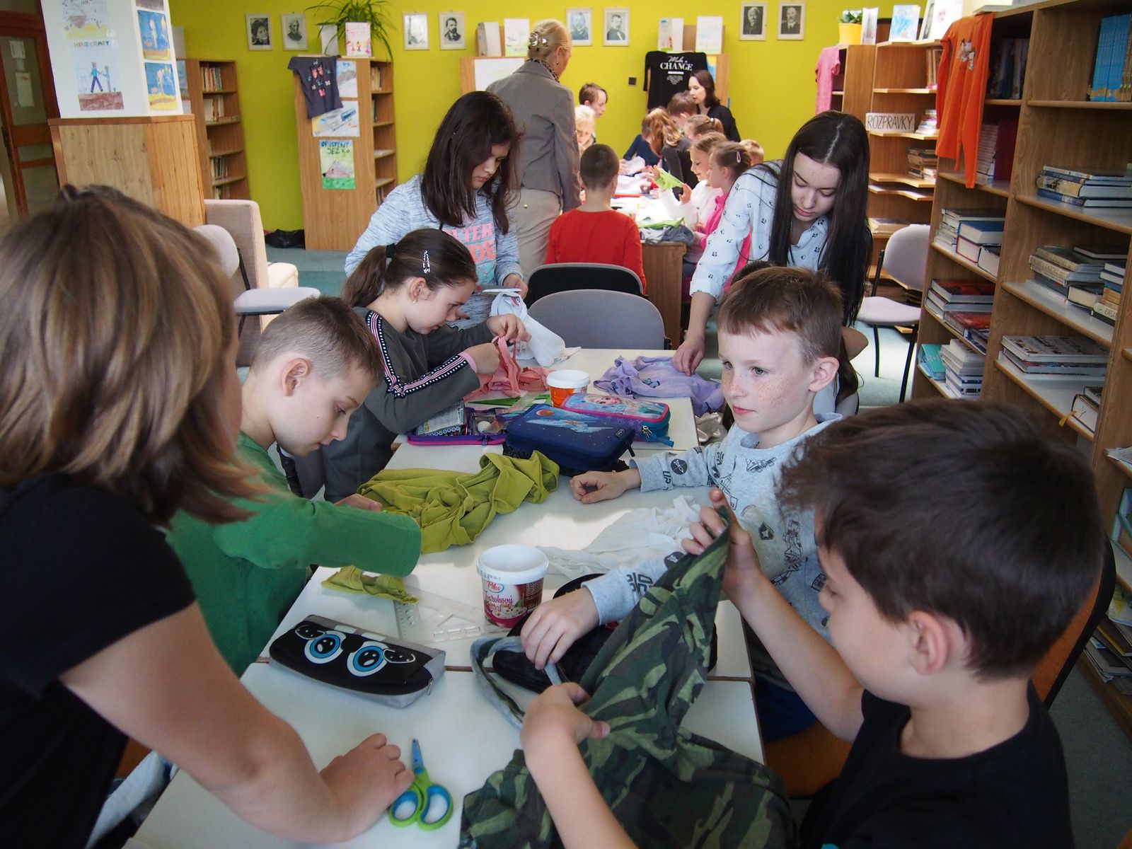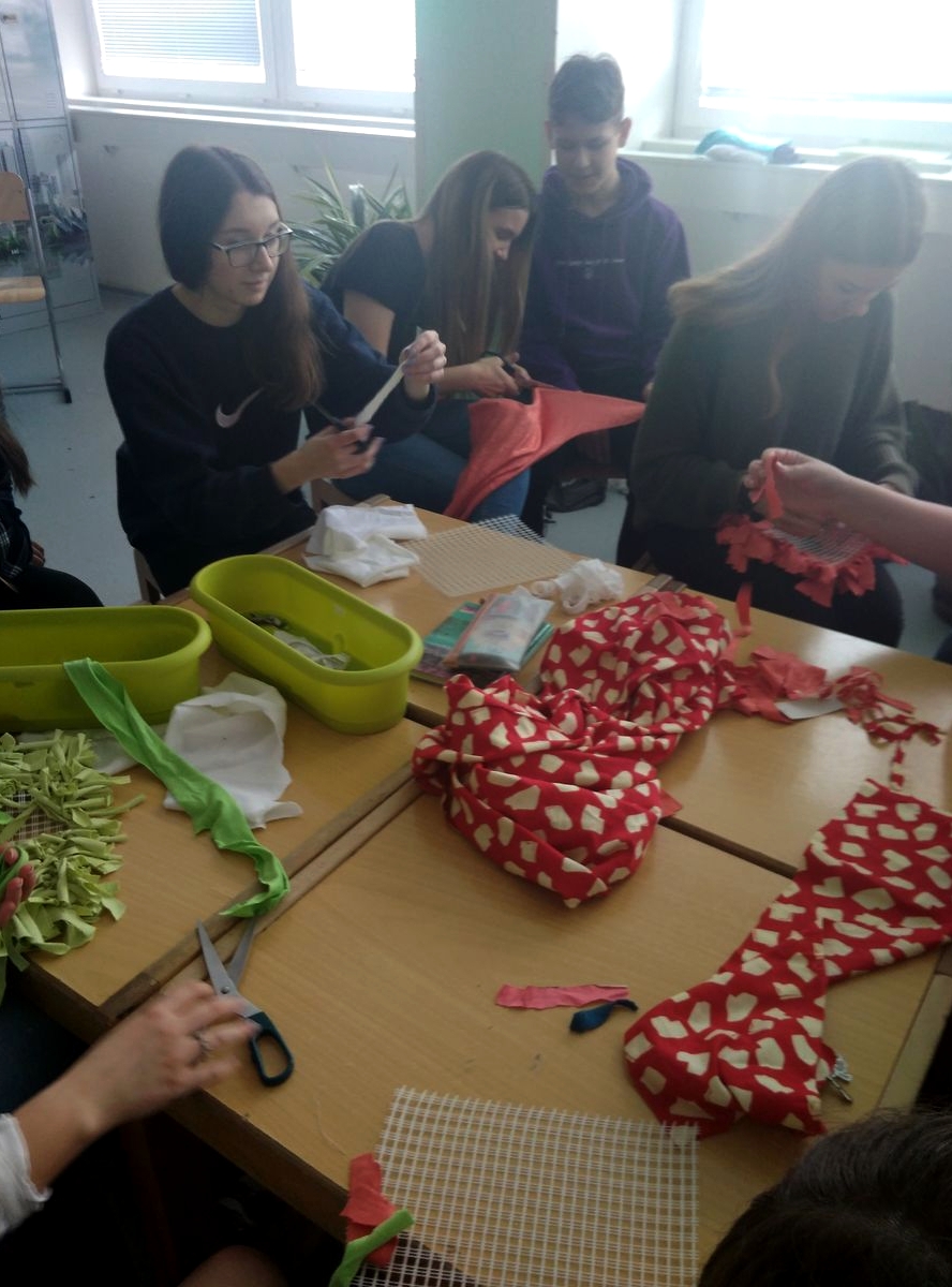 Na výrobu im stačili iba staršie tričká alebo látky. Svedomito strihali, viazali, kreslili, farbili a vytvorili „staronové“ tašky či podložky. Svoje zručnosti ďalej uplatnili v rámci výchovného koncertu, kde s pomocou rozprávkových postavičiek triedili rozličné druhy odpadu.