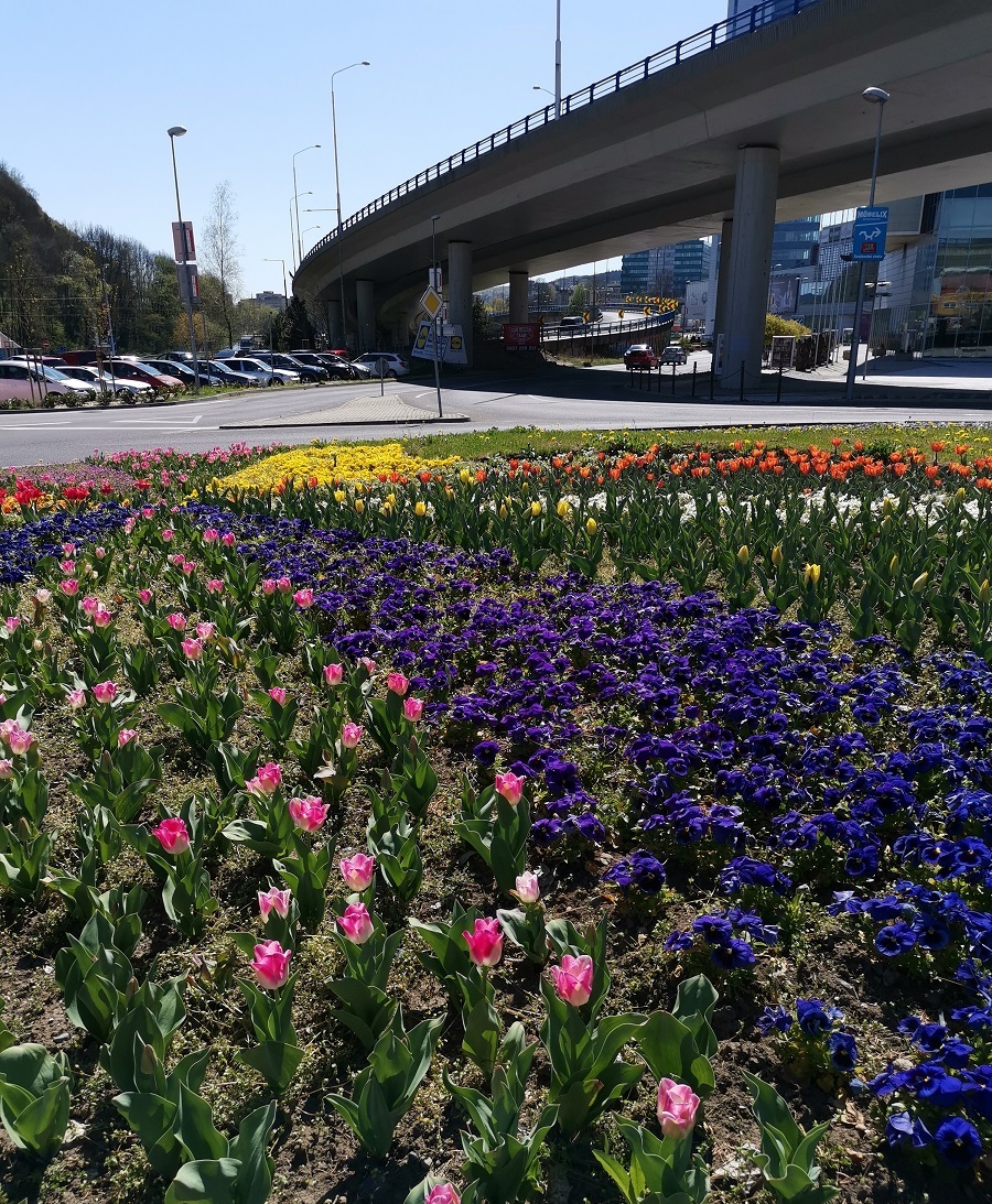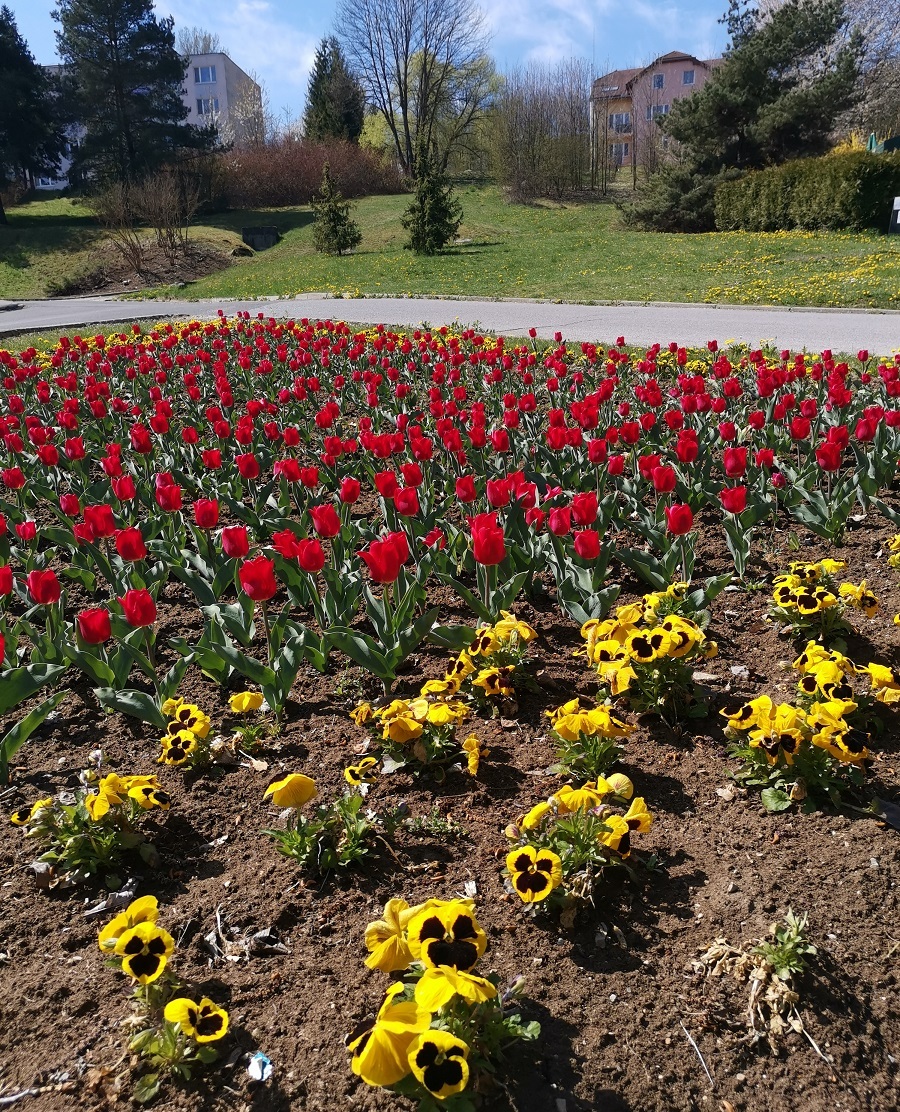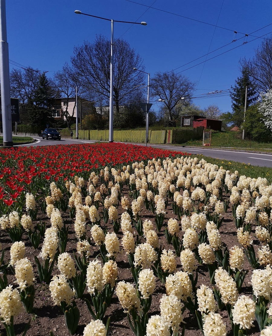 Mestskí záhradníci pripravili a vysadili jarné kvetinové záhony už na jeseň z dvojročných rastlín a cibuľovín. Tie  rozkvitajú nástupom teplejšieho počasia po celom meste do žiarivých farieb. Po ich odkvitnutí sa cibuľky vyberú zo zeme a záhony sa vysadia v ZAaRESe vypestovanými letničkami.