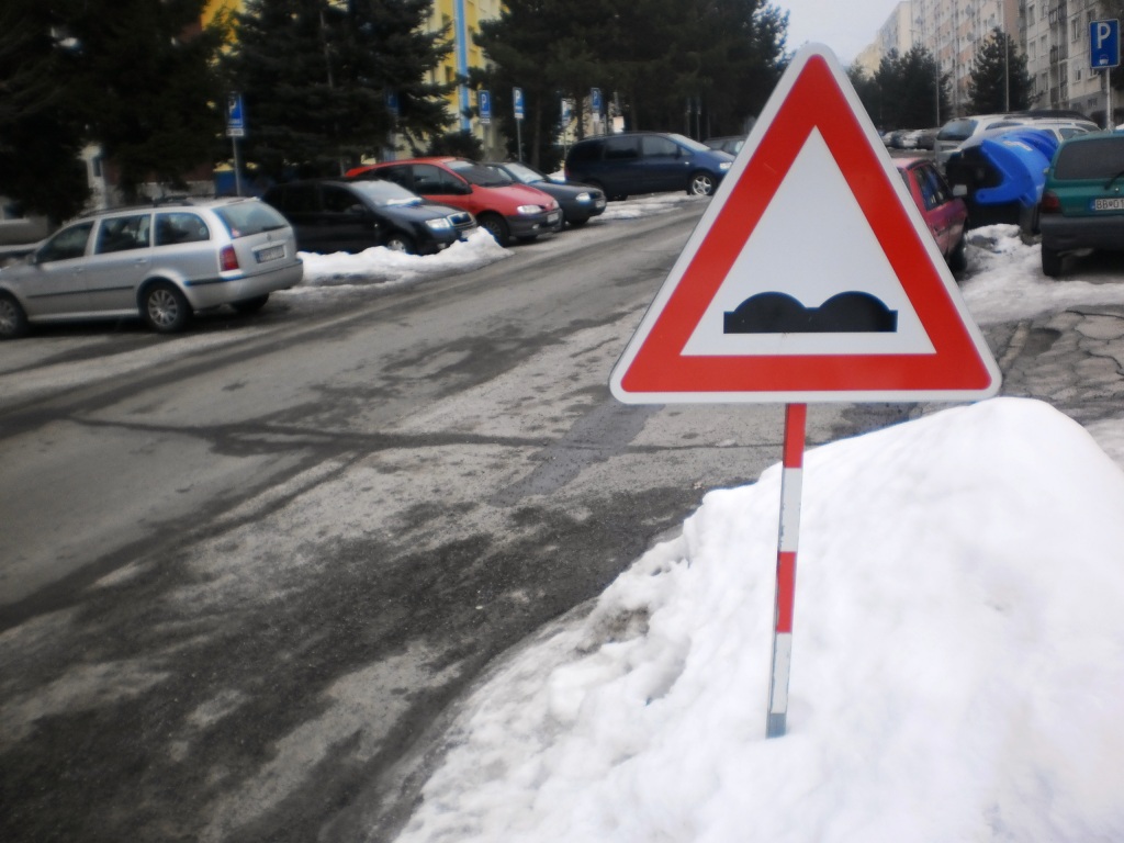 Hlavne že na začiatku „sásovského tankodromu“ je v snehu vedľa cesty zapichnutá dopravná značka „nerovná vozovka“, ktorá upozorňuje vodičov na výtlky a diery na ceste. Ak si majiteľ resp. správca mestskej cesty na Tatranskej myslí, že týmto počas zimy vyriešil problém, je na omyle. Je to iba zbavenie sa právnej zodpovednosti za škody na vozidlách občanov spôsobené nájazdom do diery na ceste pri využití pravidla, že vodič musí prispôsobiť jazdné vlastnosti vozidla povahe vozovky aj podľa dopravného značenia…