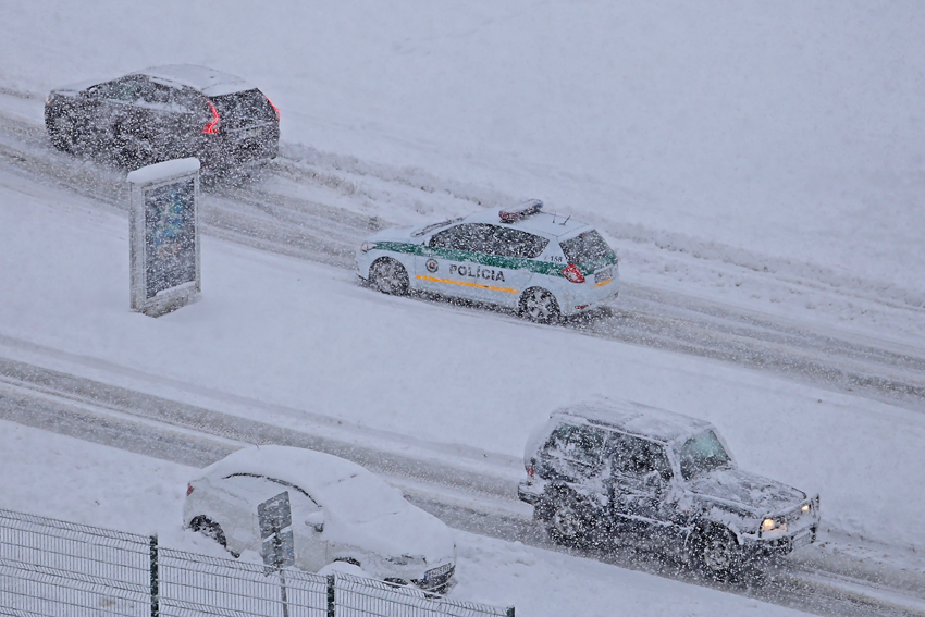„Na vozovkách ciest je vrstva kašovitého snehu, v nižších polohách do dvoch, v horských do troch centimetrov, na Čertovici až štvorcentimetrová. Tu je okrem hustého sneženia aj silný nárazový vietor a tvoria sa tam snehové jazyky. Vyzývame vodičov, aby jazdili mimoriadne opatrne,“