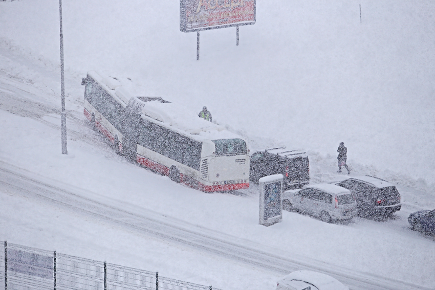 Pomerne zložitá dopravné situácia je aj ďalších sídliskách, pretože od rána v Banskej Bystrici napadlo už vyše dvadsať centimetrov čerstvého snehu. Viacerí obyvatelia sa sťažovali, že najmä zrána boli cesty slabo odhrnuté. Popoludní v Sasovej prestali premávat niektoré autobusové linky MHD, mali problém pohýnať sa do svahu. Večer zaznamenali výpadky elektrického prúdu na celom sídlisku. Večer prestalo snežiť, takže sa môžu dočistiť komunikácie. Pozor na ťažký mokrý sneh, ktorý padá z konárov stromov i zo striech.