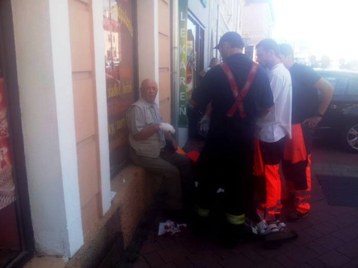 Pri kolízii došlo k zraneniu hlavy staršieho muža od úlomkov rozbitého skla, ktorého privolaní lekári na mieste ošetrili. Našťastie neovládané vozidlo na chodníku nikoho nezrazilo.
