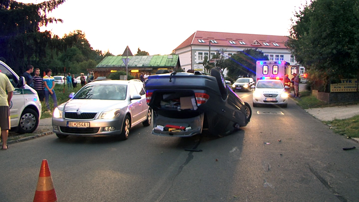 Pred pondelkovou kurióznou dopravnou nehodou mladej vodičky na BMW, ktorá si splietla plyn s brzdou a cez chodník skončila vo výklade lekárne na Hornej ulici, došlo deň predtým k ďalšej nehode bavoráka. Na začiatku sásovského sídliska sa v ňom prevrátili traja mladíci na strechu.