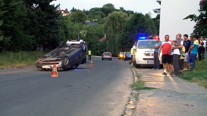 Tmavé BMW vošlo do zákruty na konci Rudlovskej cesty zrejme veľmi riskantne a rýchlo. Vozidlo vynieslo na svah a ten ho katapultoval späť na cestu, pričom sa auto prevrátilo na strechu. Trom mladíkom v ňom sa napokon nič vážne nestalo. Po nehode vyliezli z prevráteného vozidla a zavolali políciu.