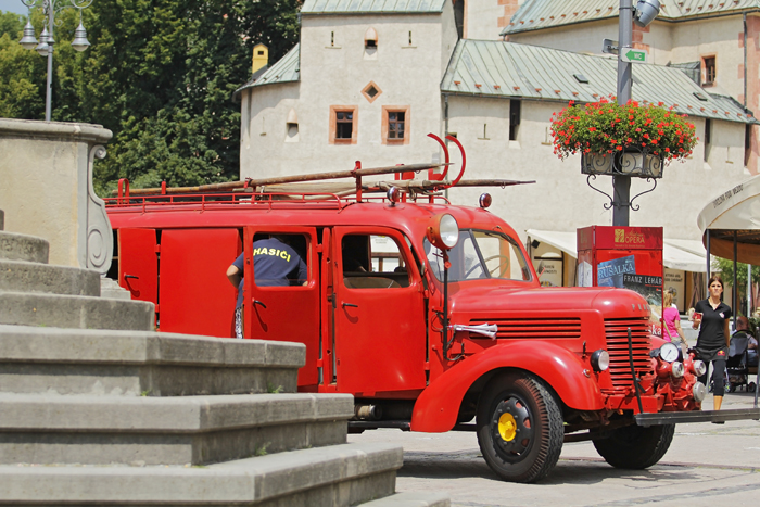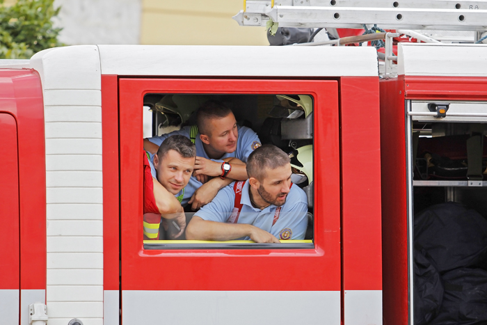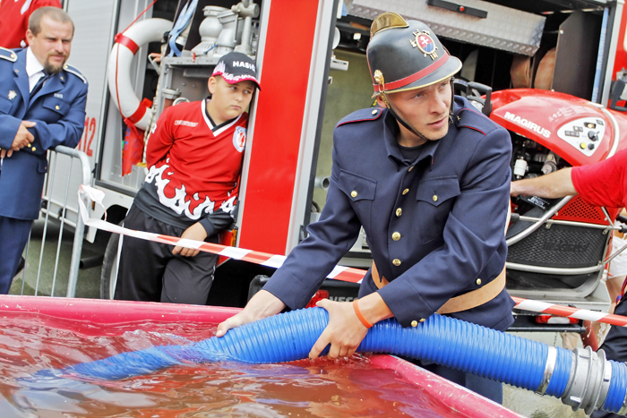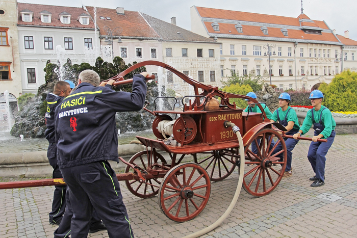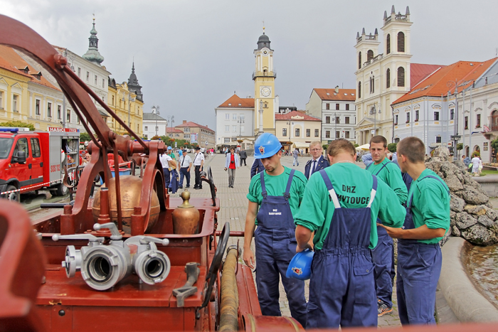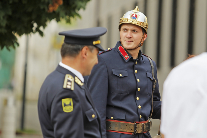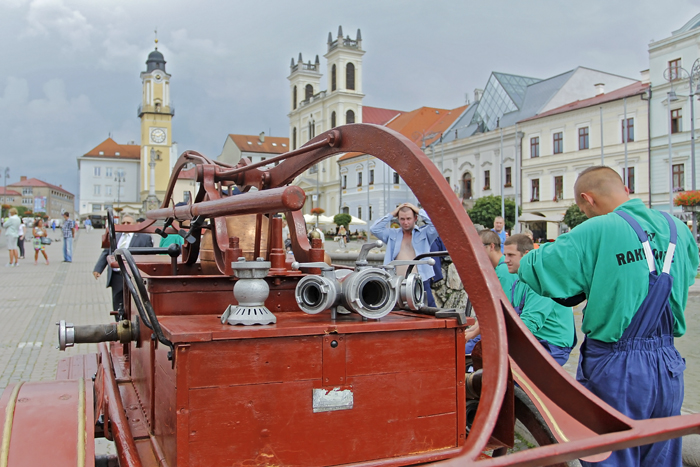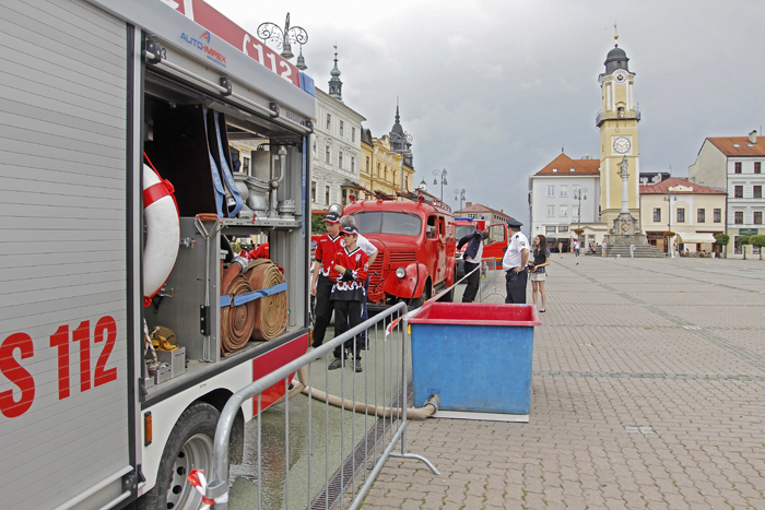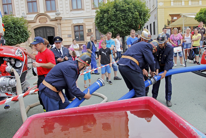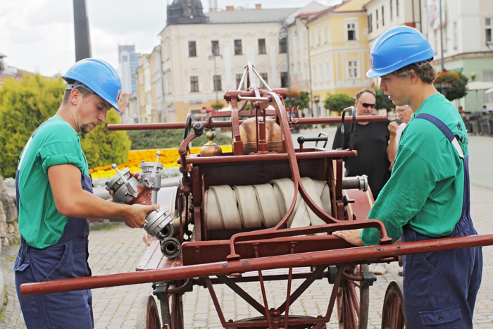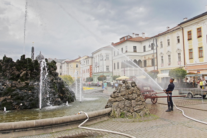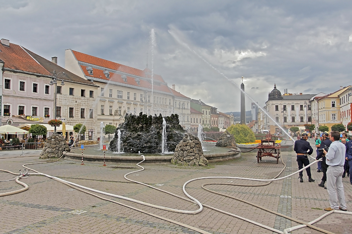 Na hlavnom bystrickom námestí predviedli svoje umenie na historických vozidlách s technikou aj v dobových uniformách, ale nechýbalo ani moderné hasičské vybavenie. Nad fontánou sa vznášali prúdy vody z hasičských hadíc, vládla veselká nálada. Niektorí z hasičov hasili potom smäd vychladeným pivom alebo zmrzlinou.