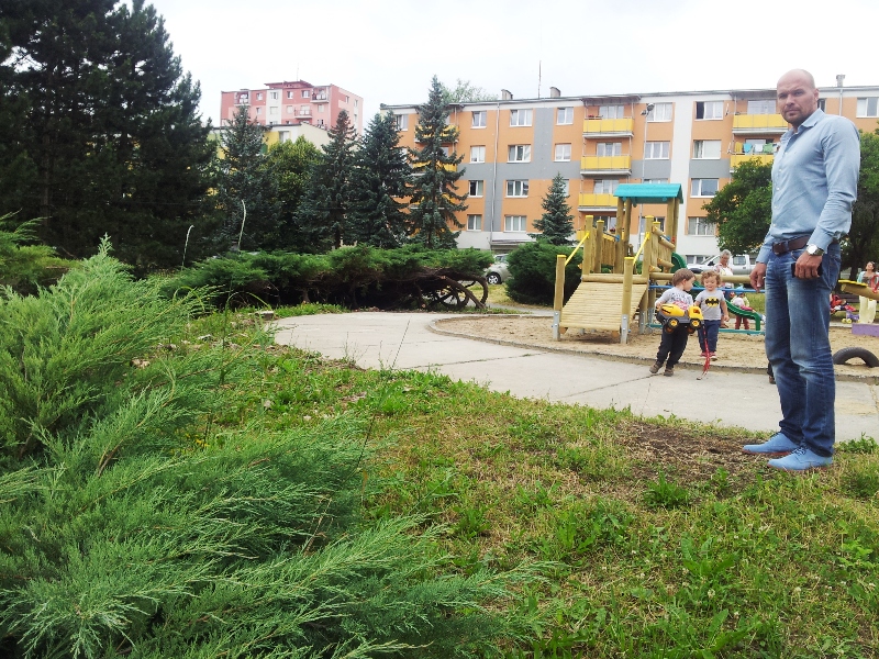 „Na tomto mieste sme museli vysekať neupravované kríky, v ktorých bolo množstvo odpadu, od fliaš z alkoholu aj po použité injekčné striekačky. V takomto prostredí sa jednoducho nemohli hrať deti. Celý priestor sme vyčistili, pod samotnú plochu ihriska sme položili nový podklad, naviezli piesok a osadili nové drevené prvky. Teraz je to bezpečné miesto pre detské hry, “