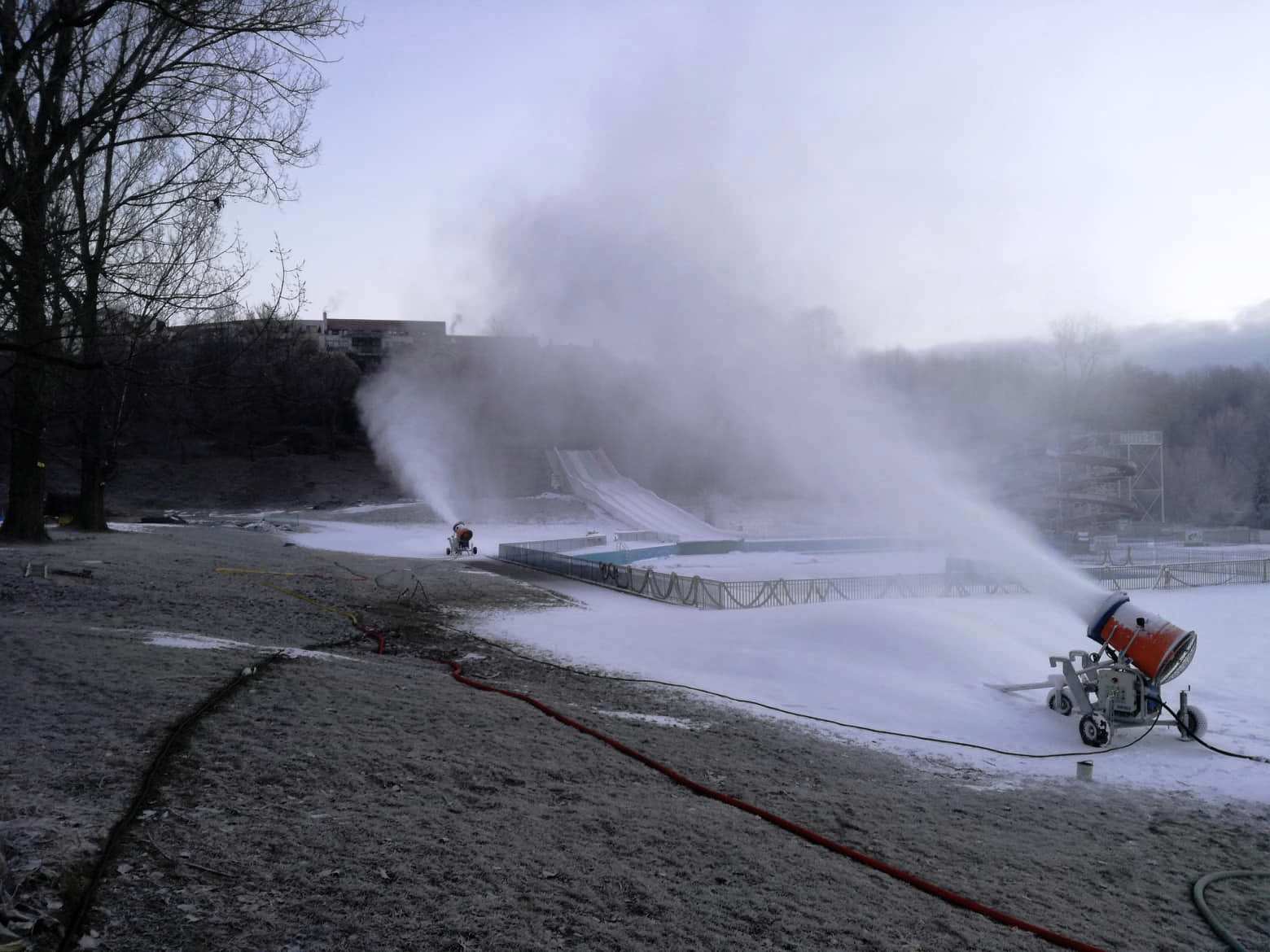 FOTO: Na plážovom kúpalisku začína ZAaRES so zasnežovaním bežeckej lyžiarskej dráhy