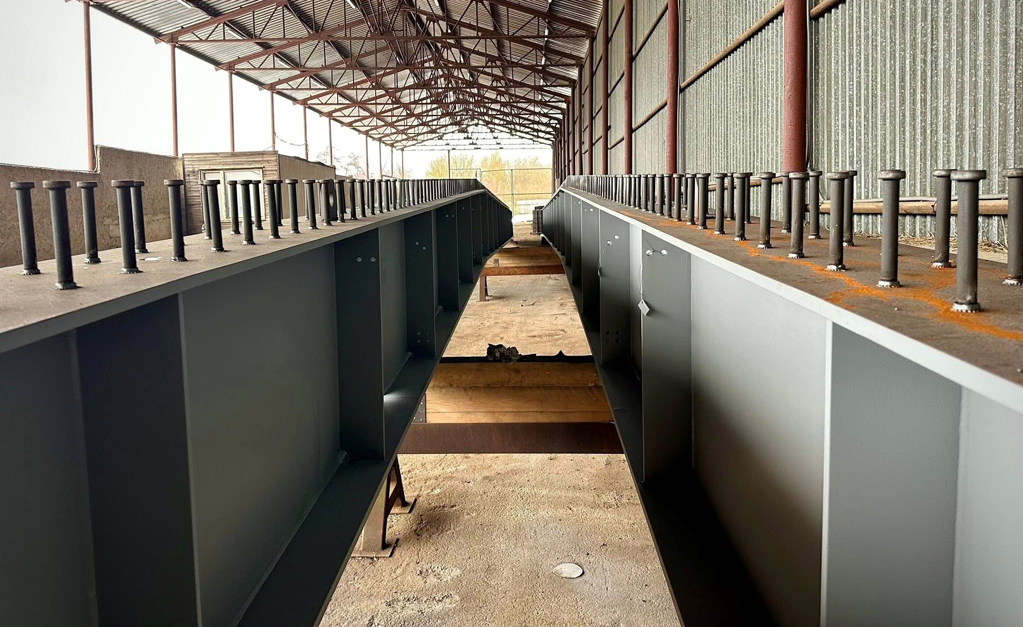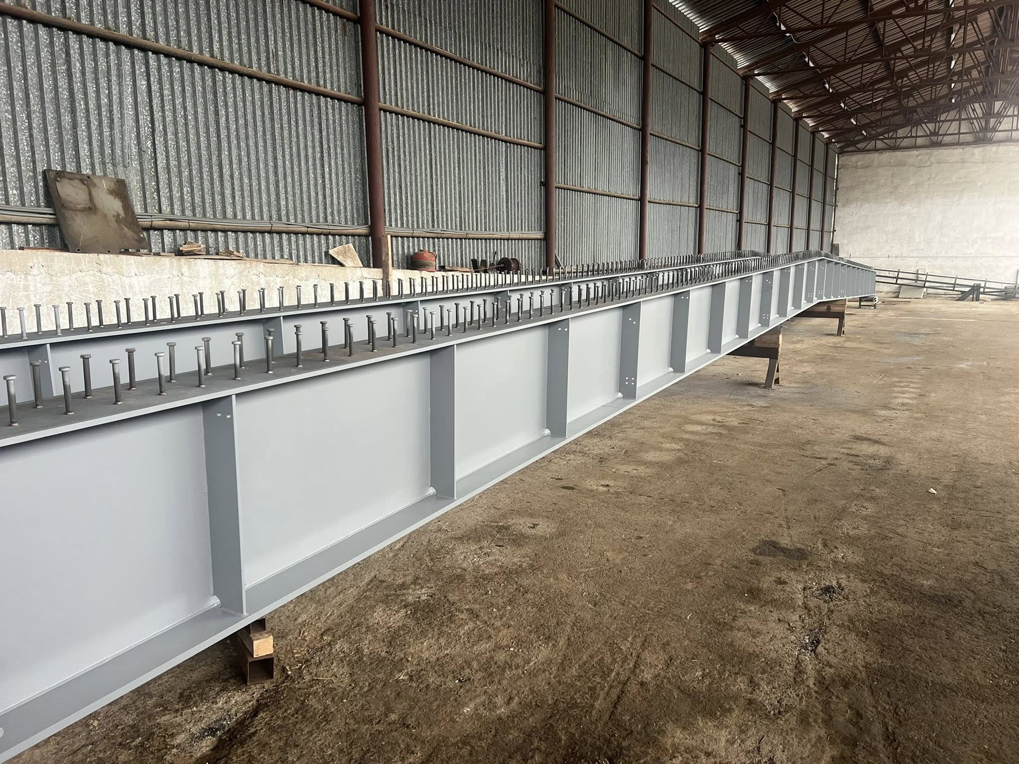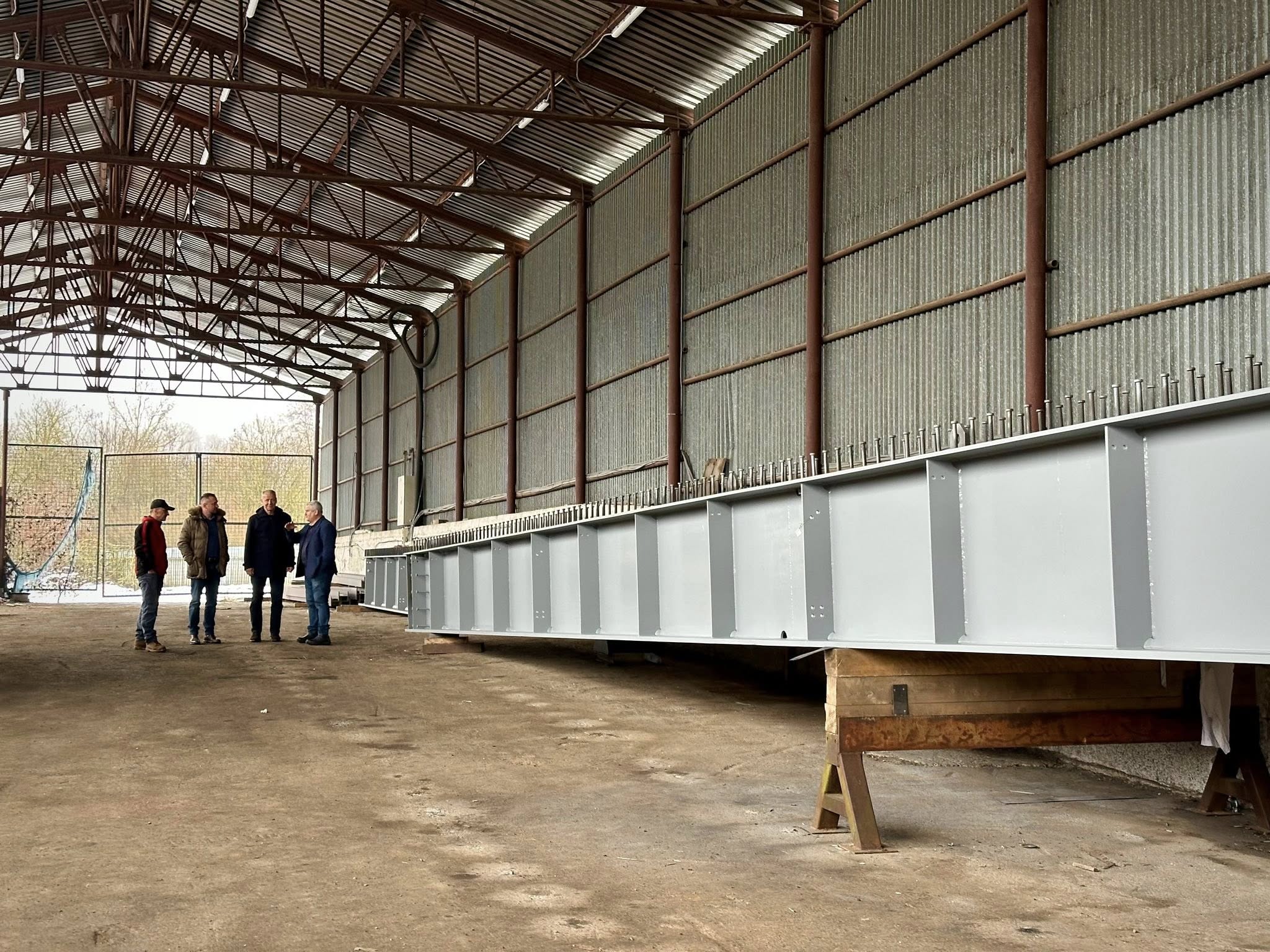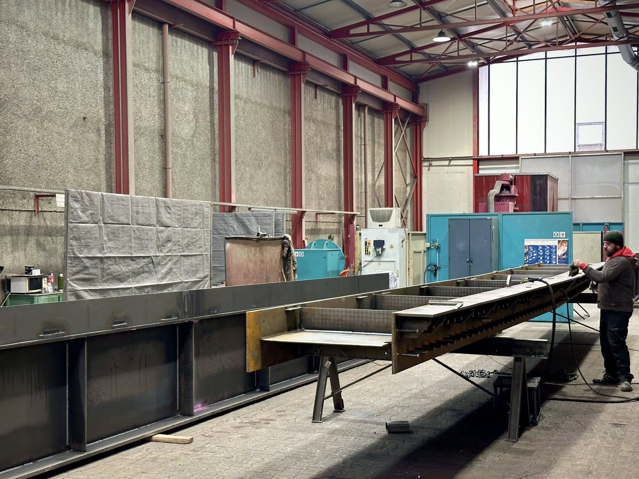 Vo výrobných halách odborníci finalizujú zábradlia a šesť kusov 35 metrov dlhých pozdĺžnych nosníkov. Minulý týždeň si primátor Ján Nosko spolu s viceprimátorom Jakubom Gajdošíkom boli pozrieť priamo na mieste výrobu oceľových nosníkov nového mosta.