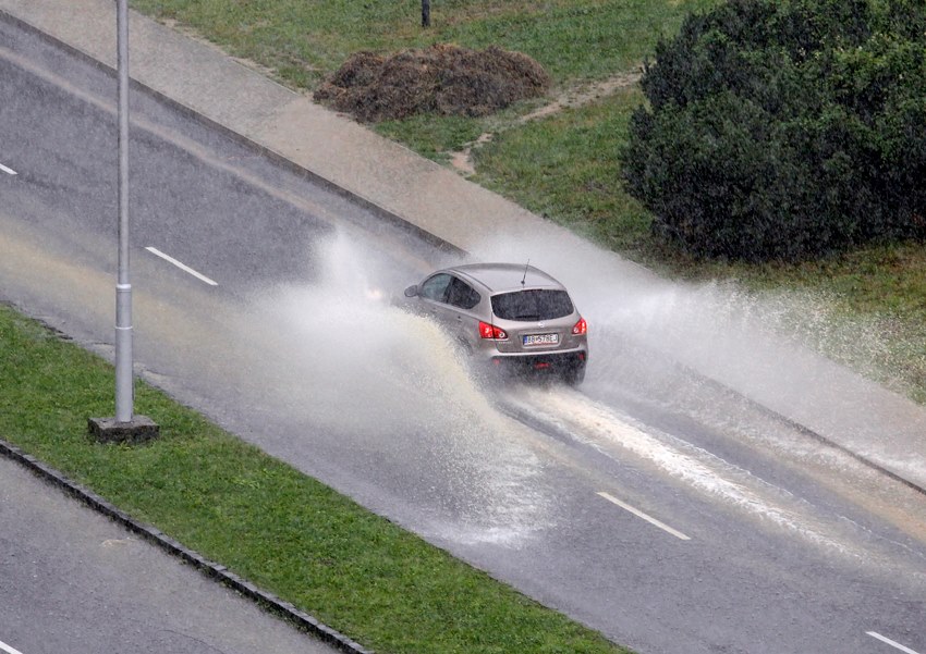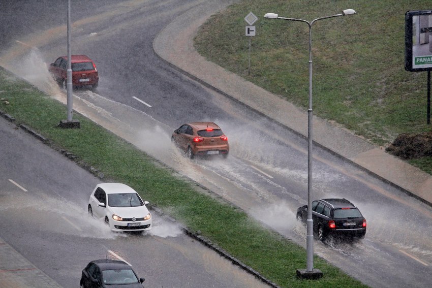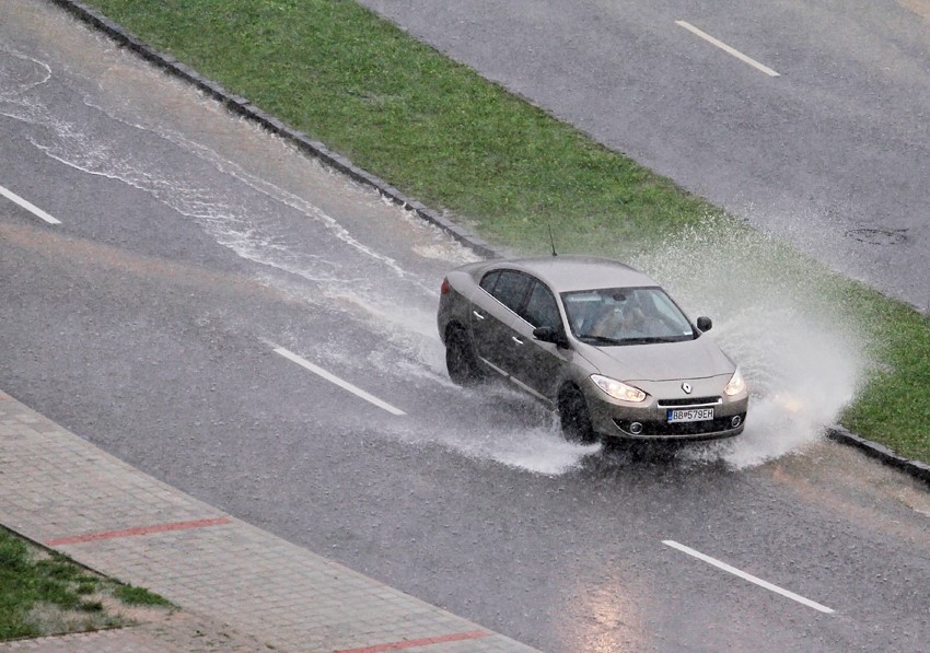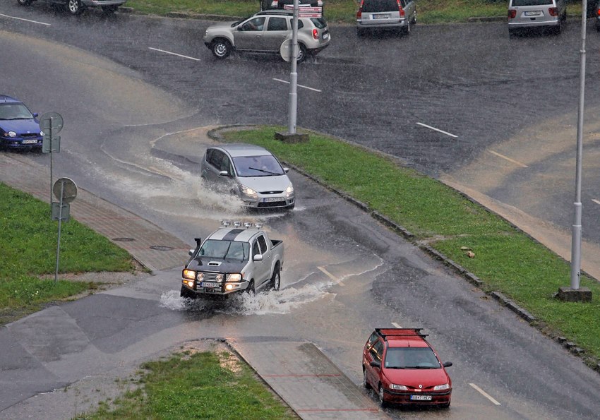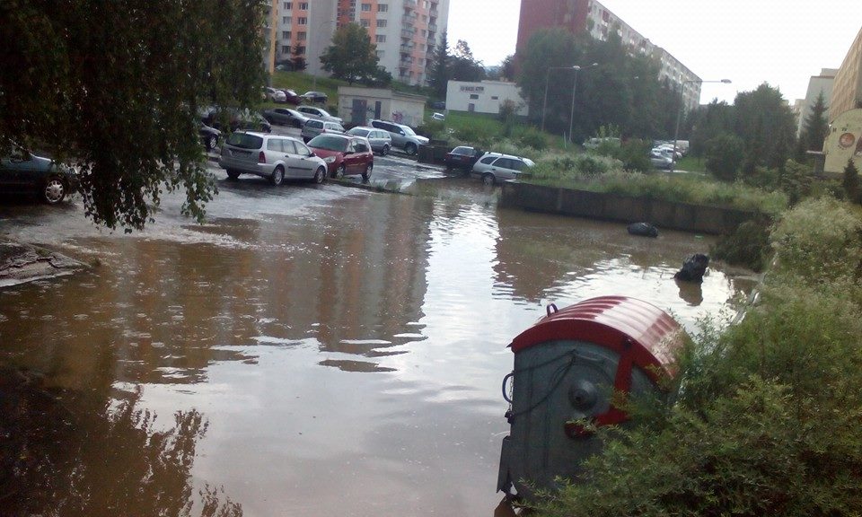 Aj v pondelok popoludní sa najväčším bystrickým sídliskom prehnal búrkový dážď. Hoci búrka nebola taká silná, ako v nedeľu, voda si opäť našla slabé miesta na ceste aj na parkovisku.