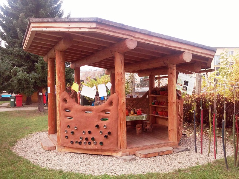 Už prvý pohľad do areálu materskej školy Na Starej tehelni svedčí o tom, že sa ocitáte v „zelenom“ svete s altánkom so zaujímavými predmetmi z darov a plodov jesene, hriadky s bylinkami (v lete s jahodami).