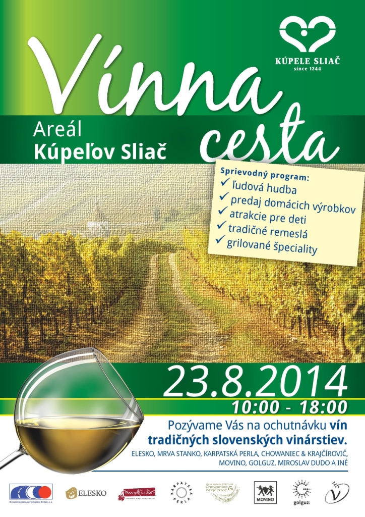 Kolonáda sliačskych kúpeľov žila v sobotu Vínnou cestou.  V príjemnom prostredí  od 11:00 do 18:00 hod. nielen kúpeľní hostia ochutnávali kvalitné slovenské vína s chutným jedlom za zvukov  ľudovej hudby.