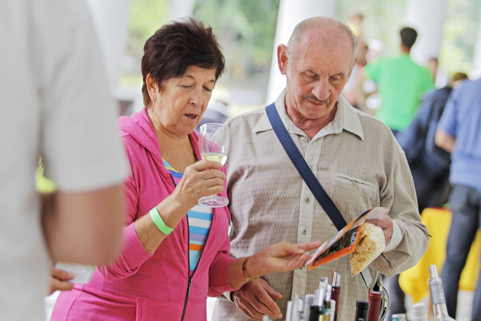 V areáli kúpeľov sme stretávali aj množstvo Bystričanov, ktorí s pamätným pohárom označeným srdiečkovým logom kúpeľov degustovali bohatú ponuku našich vinárov. Za stolíkmi s vínami vám postupne bez obmedzenia na vínnu kartu naliali biele, červené alebo ružové značky Elesko, Mrva Stanko, Karpatská perla, Chowaniec & Krajčírovič, Movino, Golguz, Miroslav Dudo a ďalšie z ponuky.