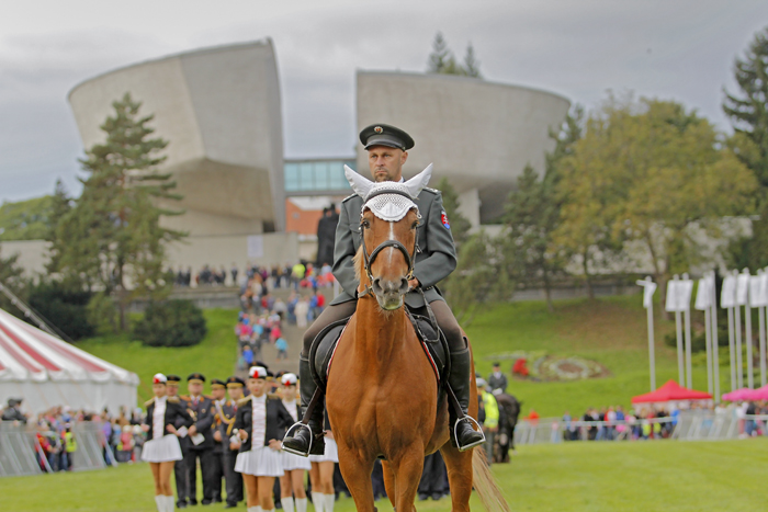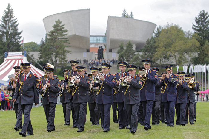 Začalo to veľkolepým sprievodom služieb Policajného zboru s koňmi vpredu s veliteľom a vlajkonosičom, mažoretkami a policajnými zložkami z Dolnej ulice cez Námestie SNP, Kapitulskú až pod Pamätník SNP, kde sa po 10:00 hod. konalo slávnostné otvorenie.