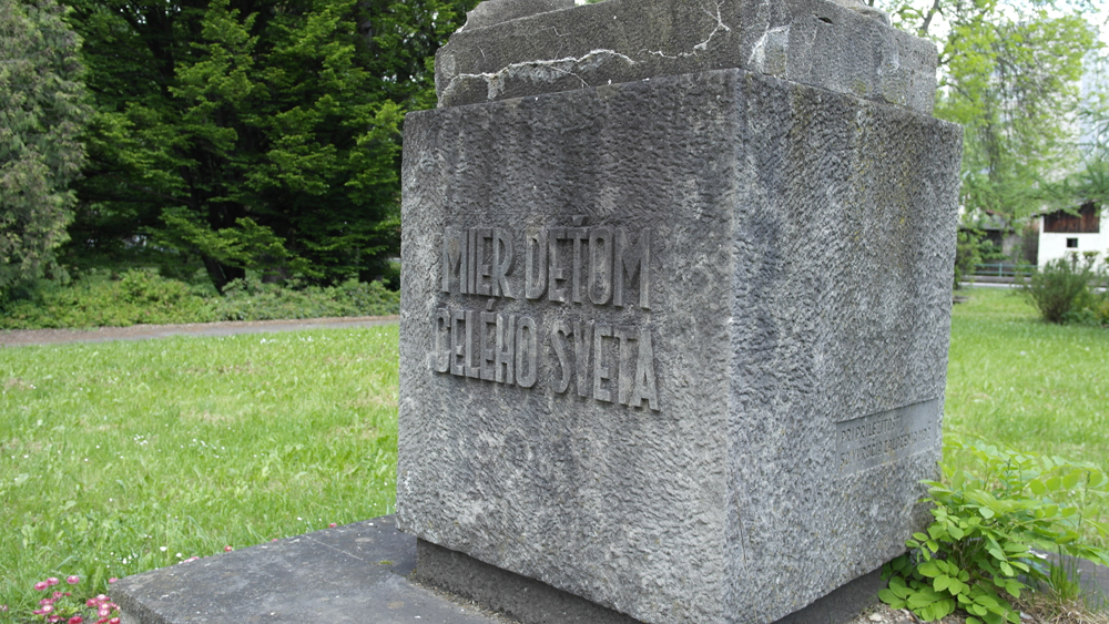Všimol si aj zničenú sochu, ktorá nesie posolstvo mieru pre všetky deti sveta: