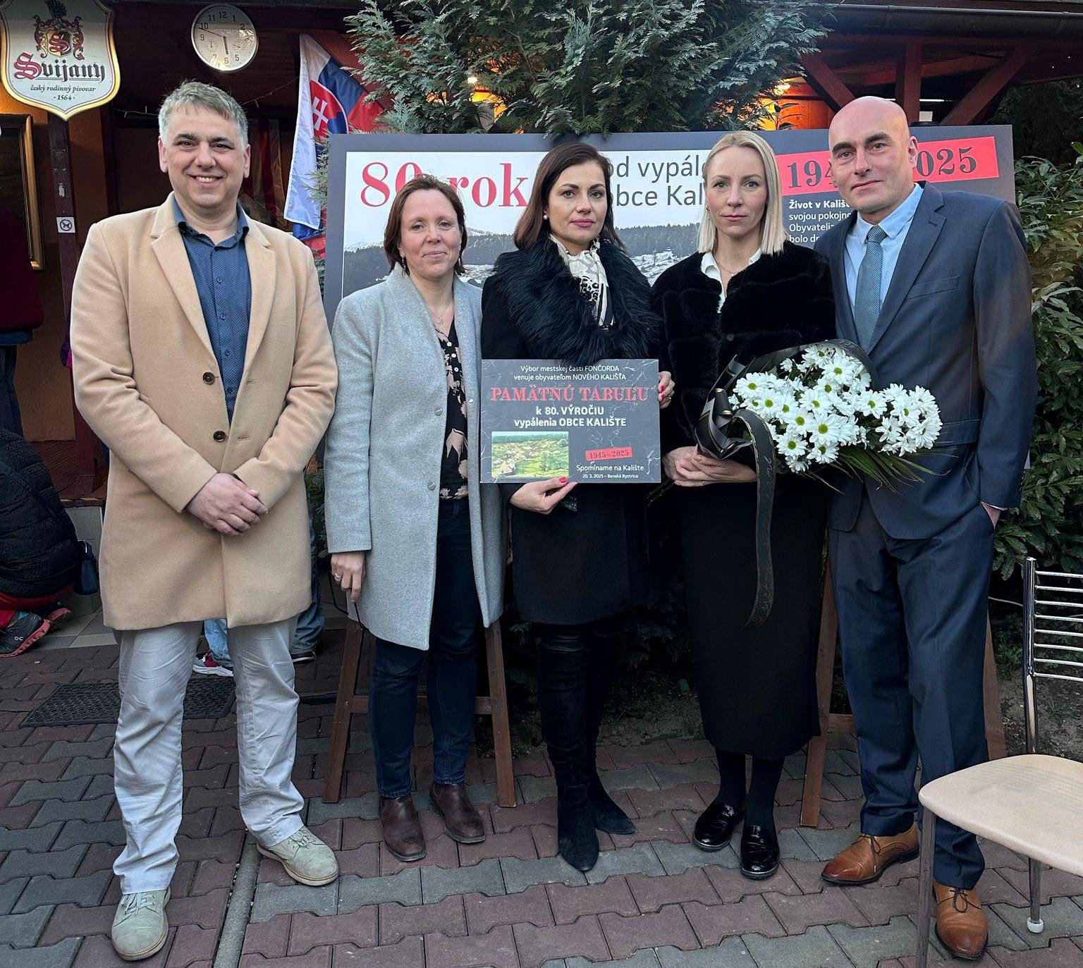 Bolo to zaujímavé stretnutie s Kališťanmi. Banskobystrický primátor spolu s Ľubicou Laššákovou odhalili pamätnú tabuľu k 80. výročiu vypálenia obce Kalište, ktorú obyvateľom Nového Kališťa venoval Výbor mestskej časti Fončorda.