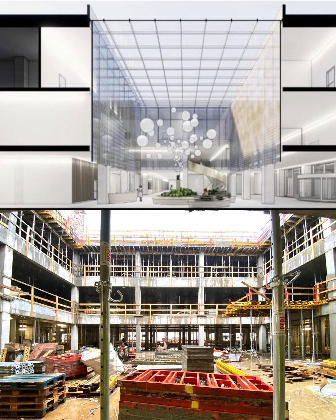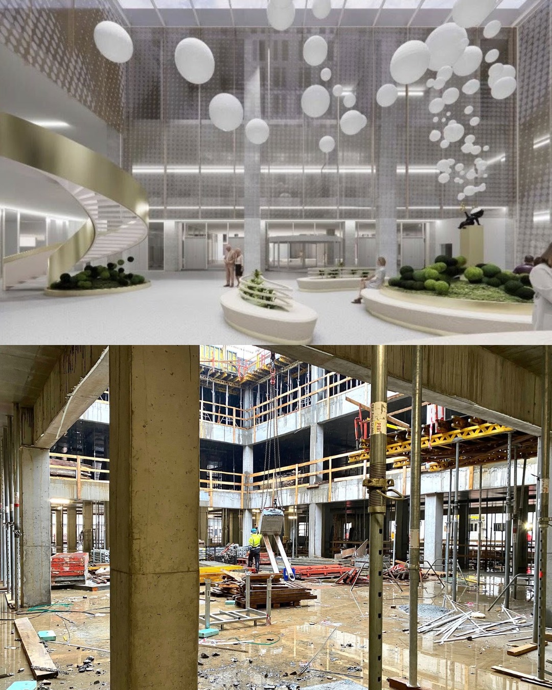 Architektúra tu nebude len funkčná, ale aj rozprávajúca príbeh. Zároveň sa v tejto lokalite začína výstavba tretieho nadzemného podlažia. Dvíha sa prvé X, konkrétne jeho juhovýchodná noha už má vyarmované a vybetónované prvé jadrá, obvodové steny a stĺpy.