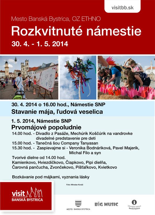 „Prvomájové popoludnie“, začalo na centrálnom bystrickom námestí 1. mája o 14:00 hod. s Divadlom z Pasáže a hrou Mechúrik Koščúrik na vandrovke, ďalej pokračovalo tanečnou šou Company Tonyasan, spevom Veroniky Bodnárikovej, Pavla Majeríka a Michala Filu so synom. Pripravené boli aj tvorivé dielne či bozkávanie pod májkami s vyznaním lásky.“