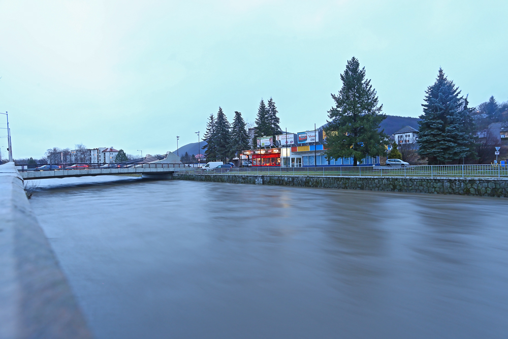 Vytrvalý dážď spôsobil v stredu stúpanie hladiny Hrona aj v Banskej Bystrici. Slovenský meteorologický ústav vyhlásil pre mesto pod Urpínom 1. stupeň výstrahy.