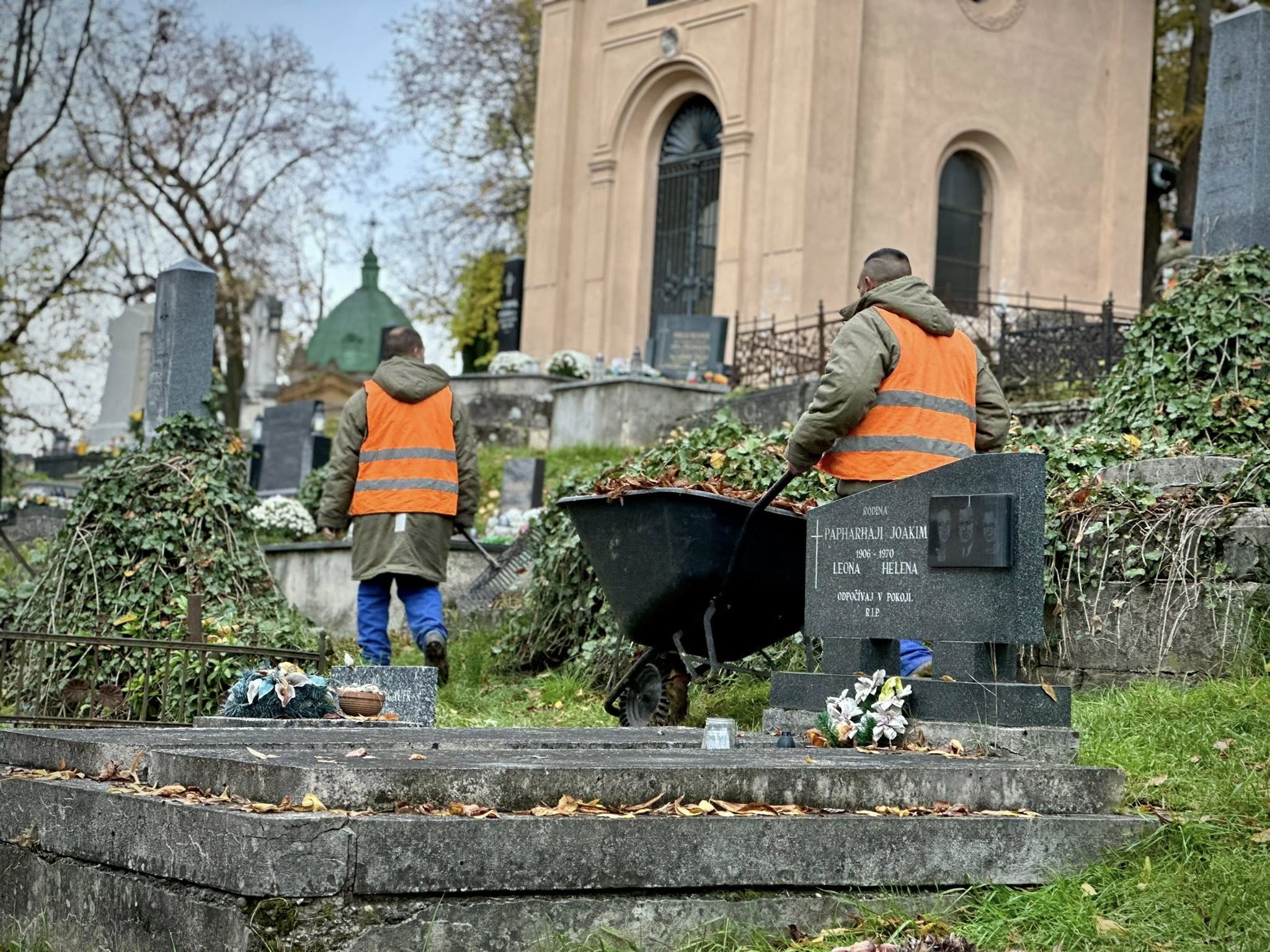 V uplynulých týždňoch vykonávali pracovníci Záhradných a rekreačných služieb intenzívnejšiu jesennú údržbu na všetkých 16 pohrebiskách, ktoré spravuje ZAaRES. Počas roka sa ZAaRESáci starajú o kosenie, ošetrovanie a výsadbu drevín ako aj o odstránenie poškodených stromov či krov.