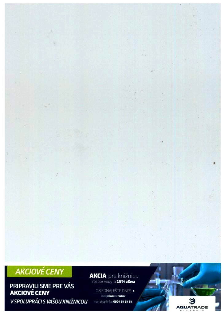 Čitatelia knižnice môžu využiť akciové ceny od spoločnosti AQUATRADE Slovakia na rozbor vody s 15 – percentnou zľavou a ich knihy poteší aj vkusná záložka.