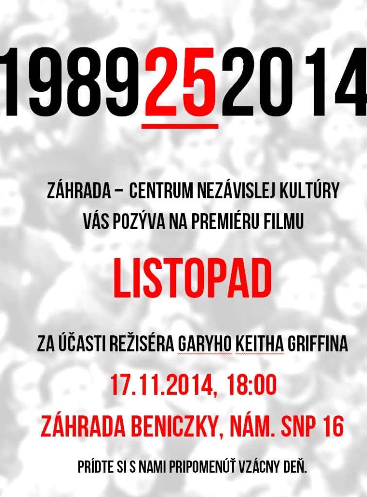 Záhrada: Centrum nezávislej kultúry o 18:00 hod. LISTOPAD – premietanie filmovej novinky
