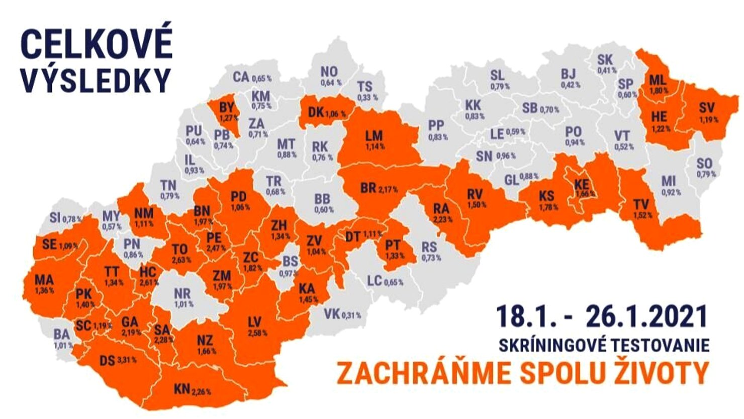 Výsledky celoplošného testovania od 18. – 26. januára 2021