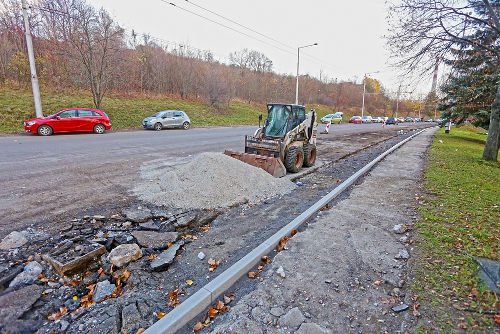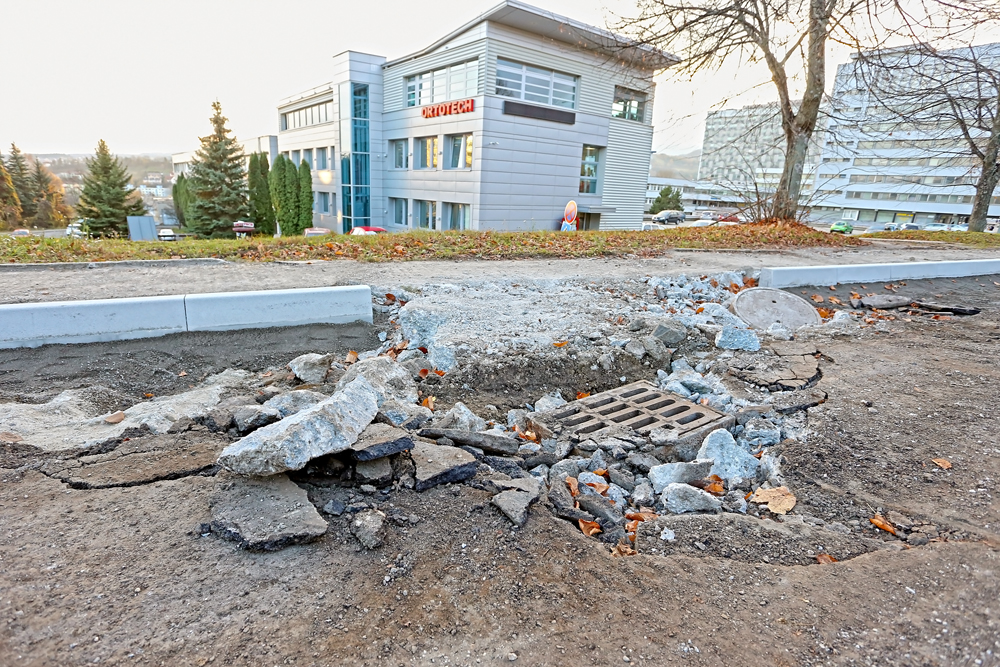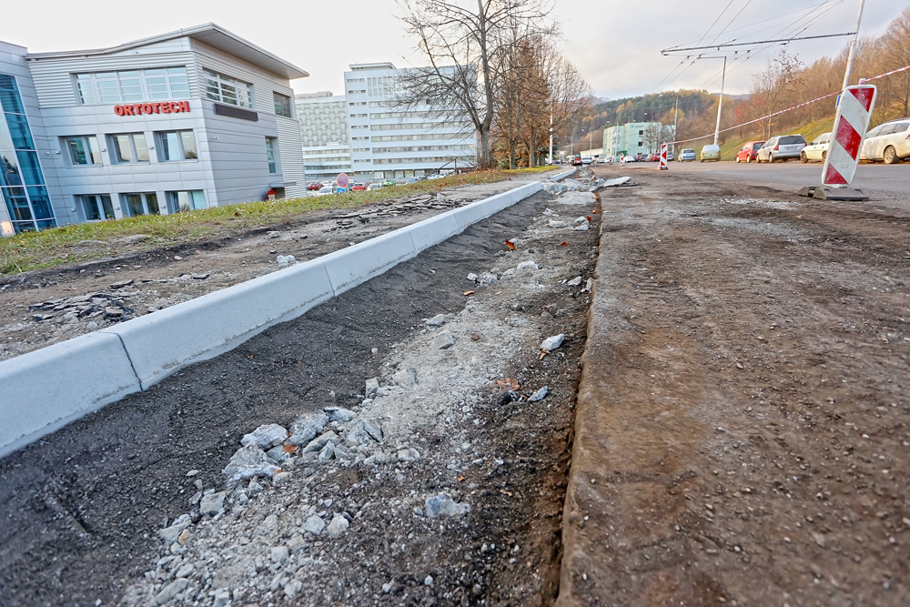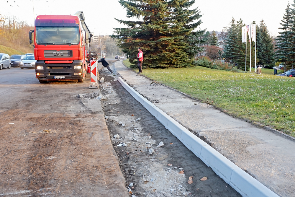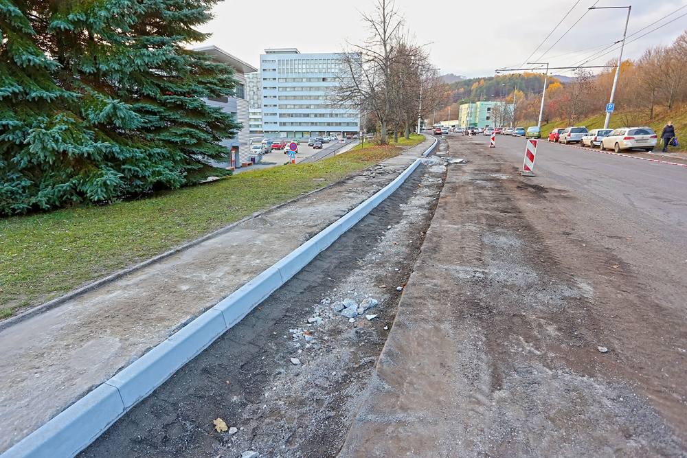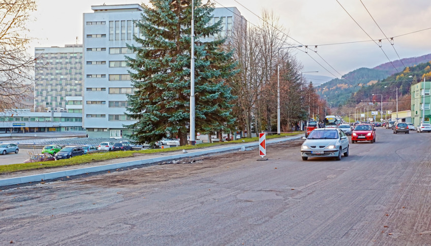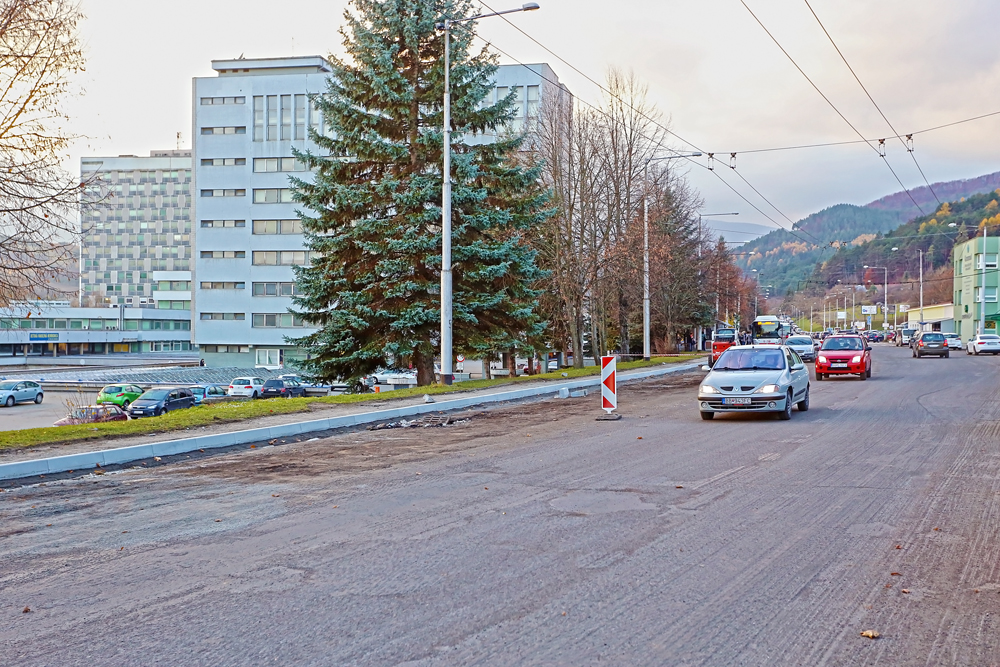 Aktuálne prebiehajú stavebné práce od odbočky k nemocnici z Tajovského ulice až po autobusovú zastávku pri Rooseveltke. Na vyfrézovanej vozovke sa odstránil rozbitý asfalt, rovnako aj na chodníku, kladú sa nové obrubníky. Na budúci týždeň by sa mal klásť nový asfalt.