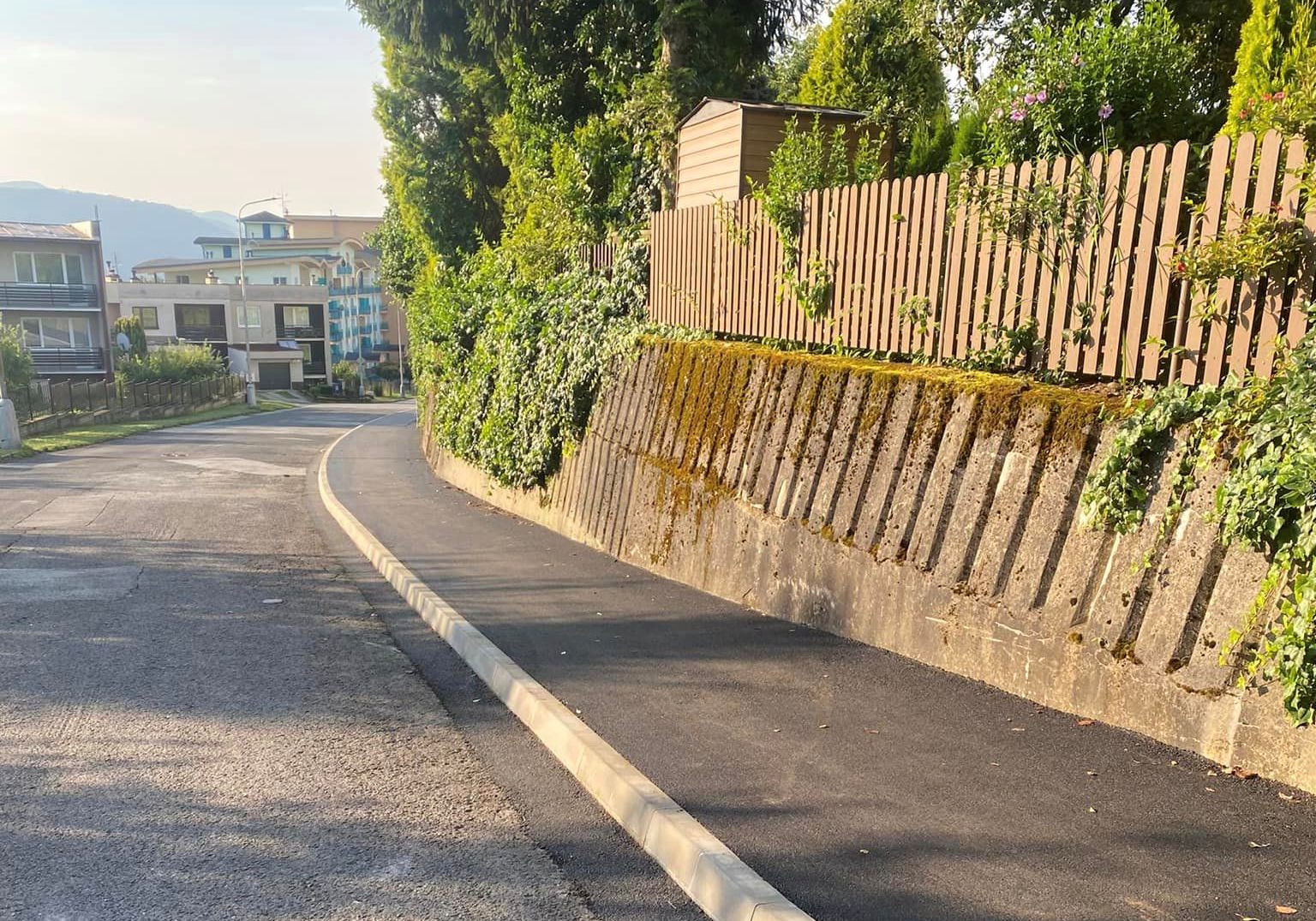 Rekonštrukčné práce spočívali doplnením obrubníkov, odstránení starého asfaltu, osadenie priek. žľabu z betónových priekopových tvárnic, opravili sa podkladové vrstvy a následne sa položil nový asfaltový kryt.