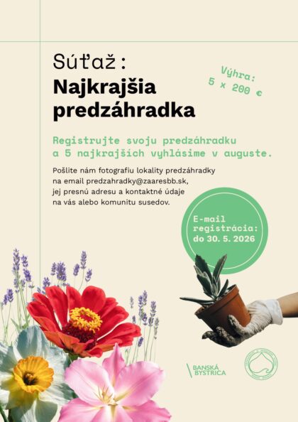 Súťaž o najkrajšiu predzáhradku nie je v Banskej Bystrici novinkou. Doteraz ju organizovali aktívne skupiny obyvateľov, vždy len na lokálnej úrovni v rôznych častiach mesta. Samospráva sa rozhodla vyhlásiť ju pre celé územie mesta. Záujem zapojiť sa do súťaže je potrebné nahlásiť do konca mája 2026 na e-mailovej adrese: predzahradky@zaaresbb.sk.