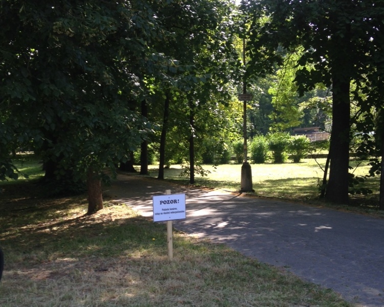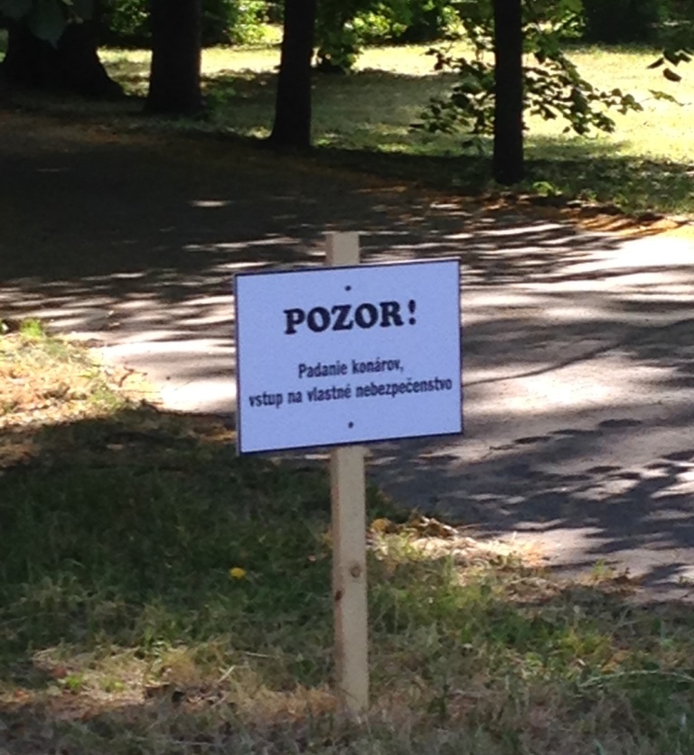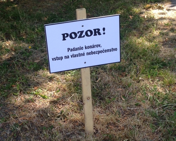 Faktom je, že keby napriek osadeniu tabuliek s textom „Pozor! Padanie konárov, vstup len na vlastné nebezpečenstvo“ niekoho zranil padajúci konár alebo celý strom určený na odstránenie, tak by v skutočnosti všetku zodpovednosť voči poškodenému cez poisťovňu a políciu niesol vlastník, teda mesto Banská Bystrica. Pokiaľ reálne hrozí nebezpečenstvo pre ľudí pohybujúcich sa v parku, je psou povinnosťou mesta tento verejne známy zdroj ohrozujúci život chodcov bezodkladne odstrániť a nie alibisticky osadiť pri chodníkoch výstražné tabuľky.