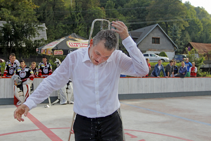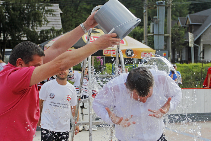 Minister školstva neobišiel v Tajove nasucho. Predtým prijal výzvu ministra vnútra Roberta Kaliňáka a zapojil sa do veľkej akcie ľadových spŕchIce Bucket Challenge, ktorou chcú známi i menej známi ľudia upozorniťna ochorenie ALS (Amyotrofická laterálna skleróza). Peter Pellegrini dostal ľadovú sprchu vedrom vody z Tajovského potoka, ktoré na neho z rebríka vylial starosta obce.