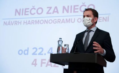 Premiér Igor Matovič predstavil v pondelok na tlačovke štyri fázy otvárania prevádzok. Plán, ktorý pripravili odborníci z radov epidemiológov a infektológov, ešte podrobnejšie prerokuje Ústredný krízový štáb. Dostal názov „Niečo za niečo“.