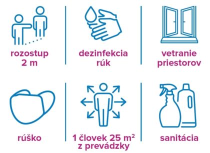 F) S účinnosťou od 22. apríla 2020 do odvolania sa prevádzkovateľom maloobchodných prevádzok a prevádzok poskytujúcich služby nariaďuje podľa § 48 ods. 4 písm. e) zákona č. 355/2007 Z. z. pre nakupujúcich (zákazníkov) a zamestnancov dodržiavanie nasledovných hygienických opatrení: – vstup a pobyt v prevádzke (vo vonkajších aj vnútorných priestoroch) umožniť len s prekrytými hornými dýchacími cestami (napríklad rúško, šál, šatka, atď.), – pri vchode do prevádzky aplikovať dezinfekciu na ruky alebo poskytnúť jednorazové rukavice, – zachovávať odstupy osôb minimálne 2 m, – počet zákazníkov v prevádzke v jednom okamihu nesmie prekročiť koncentráciu jeden zákazník na 25 m2 predajnej plochy prevádzky, – na všetky vstupy do prevádzky viditeľne umiestniť oznam o povinnosti dodržiavať vyššie uvedené hygienické opatrenia a oznam o maximálnom počte zákazníkov v jednom okamihu, – vykonávať časté vetranie priestorov prevádzky a pravidelne vykonávať dezinfekciu dotykových plôch, kľučiek, nákupných vozíkov a košíkov, – zabezpečiť umývanie podláh každý deň na vlhko.