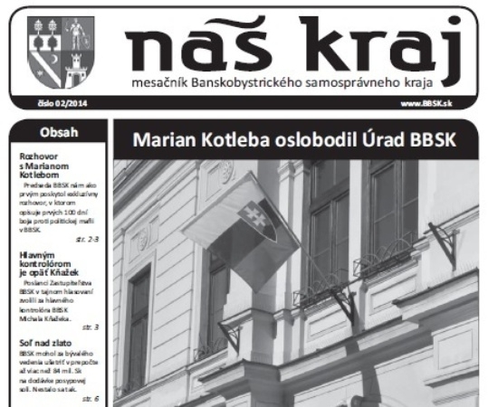Vydávanie mesačníka Náš kraj je na Úrade BBSK zastavené. Dôvodom je policajné vyšetrovanie kontroverzného obsahu čísla 2/2014 týchto novín a zrušenie financovania ich vydávania krajským zastupiteľstvom 11.apríla.