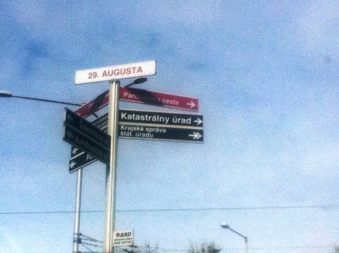 Na križovatke 29.augusta je napríklad označená odbočka na Katastrálny úrad na Partizánskej ceste, ktorý sa však odtiaľ už dávno presťahoval. Podobne je to aj so smerovkou na Mestský úrad, kde by sa podľa označníka mal nachádzať aj Okresný úrad, ktorý však už dávnejšie neexistuje. To isté je so smerovkou na Krajský úrad, ktorý bol ku koncu minulého roka zrušený a nahradený Obvodným úradom na Námestí Ľ.Štúra.