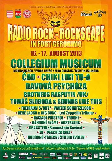 Program festivalu  Rockscape vo Fort Geronimo-Vlkanová 16.-17. 8. 2013