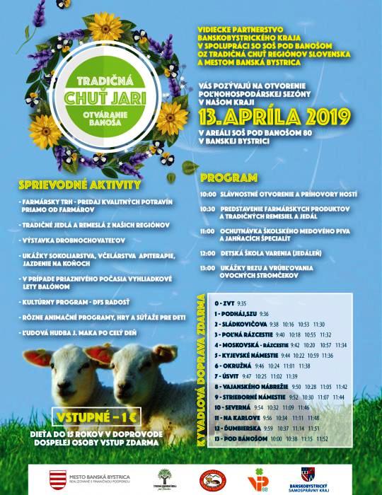Blíži sa tradičné otváranie novej poľnohospodárskej sezóny Otváranie Banoša. Farmári a remeselníci z nášho regiónu sa budú v sobotu 13. apríla 2019 od 10:00 hod. prezentovať na Farmárskych trhoch – Tradičná chuť jari v areáli SOŠ pod Banošom v Rudlovej.