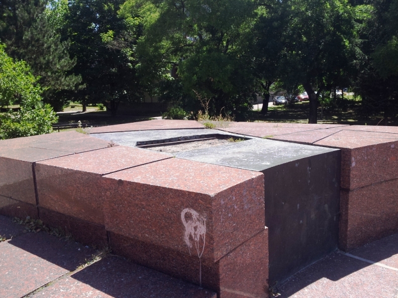 Pôvodný Leninov pamätník sa zrodil na prelome 70-tych a 80-tych rokov minulého storočia na banskobystrickom Stavoprojekte, ako súčasť dotvorenia námestia pri Dome kultúry (autor architekt Jozef Chrobák). Zvláštny červený vysokoleštený mramor bol dovezený až z Ruska a jednotlivé kusy sa osádzali do špeciálneho lôžka s originálnym škárovaním. Aj na vtedajšiu dobu to bola celkom slušná investícia.