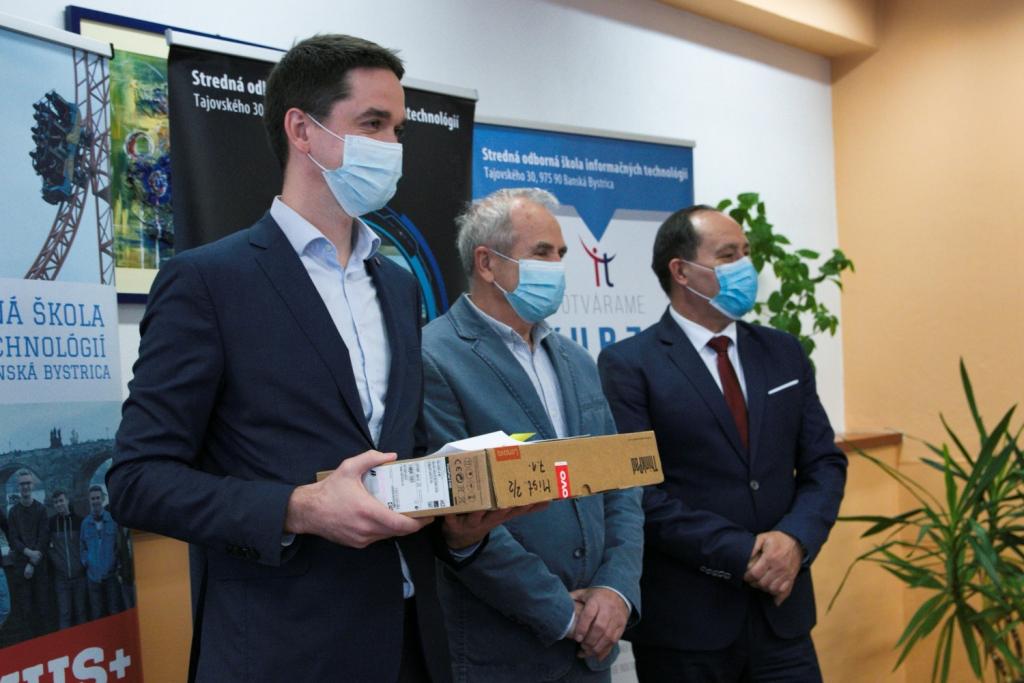uvádza podpredseda BBSK Ondrej Lunter, ktorý so zbierkou počítačov pre stredoškolákov prišiel.