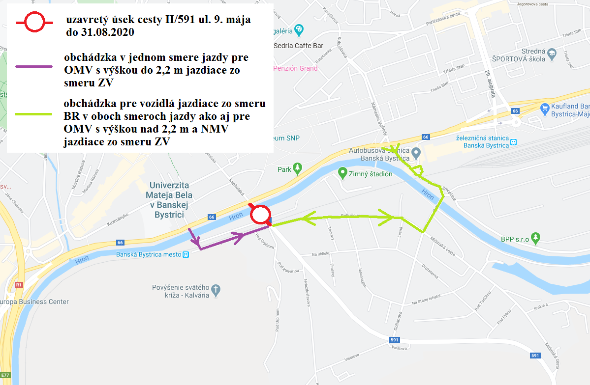 Polícia v Banskej Bystrici informuje všetkých vodičov o úplnej uzávierke cesty č. II/591 na ul. 9. mája v Banskej Bystrici, v úseku od križovatky s cestou č. I/66 po križovatku s miestnou komunikáciou s ul. Bellušovou a Pod Urpínom. Úsek cesty č. II/591 je uzavretý a uzávierka cesty potrvá do 30. 9. 2020.