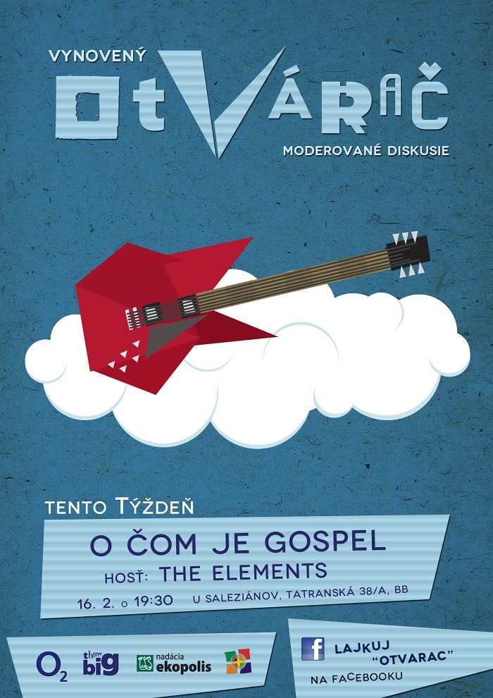 Témou najbližšieho sobotňajšieho OTVÁRAČa je diskusia o tom, o čom je gospel. Diskutovať prídu členovia rockovej kapely The Elements v zložení: