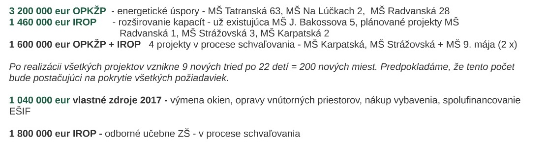 Realizované projekty z mimorozpočtových a vlastných zdrojov