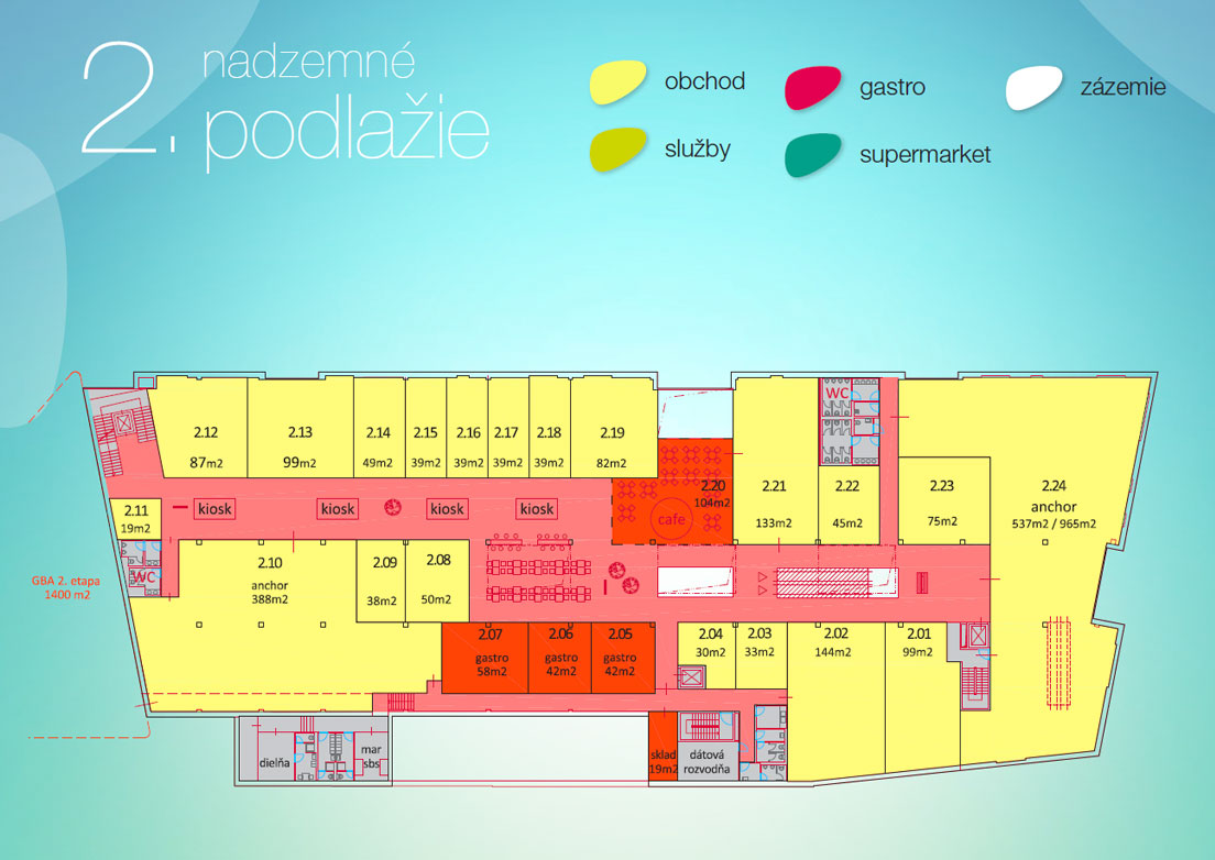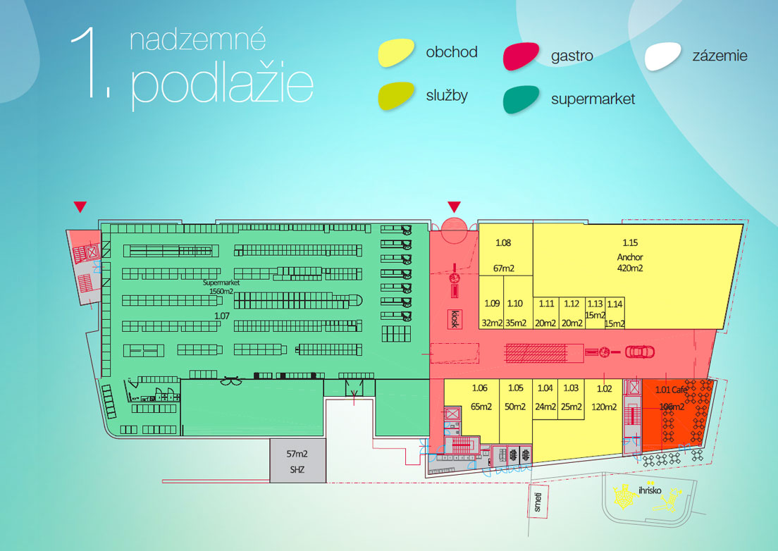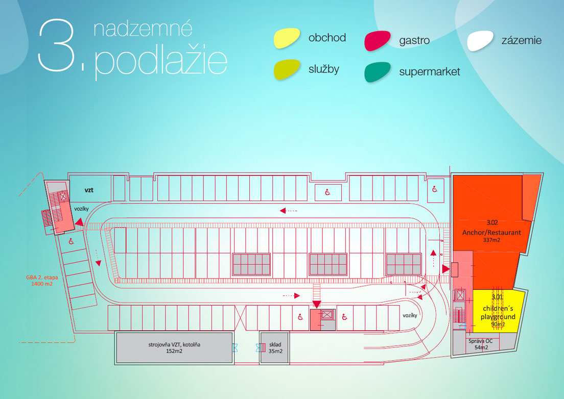 Celková plocha nového centra prevýši osem tisíc m2. Návštevníci tu nájdu obchodné a reštauračné zariadenia, rodičom s deťmi poslúžia dve detské ihriská. Jednoduchú dostupnosť z parkovísk zabezpečia tri výťahy s eskalátormi. Pre motoristov bude k dispozícii jediné bezplatné parkovanie v užšom centre mesta na dvoch parkoviskách, ktoré sa budú nachádzať na streche a na prízemí vedľa objektu.