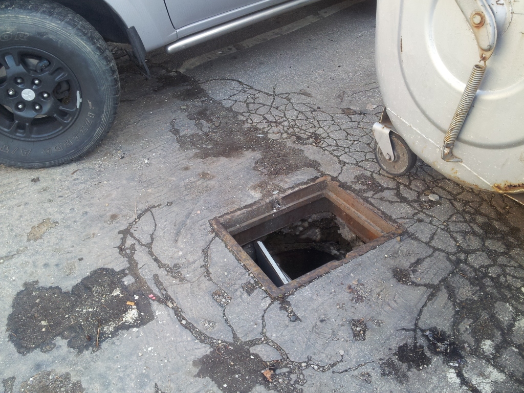Boli sme sa na mieste činu pozrieť. Spomínanú dieru sme našli bez problémov. Nachádza sa pod rampou obchodného strediska, hneď vedľa Tatranky, kam chodí dosť ľudí z okolia. Okolo diery pokojne parkujú autá. Stačí ju niečím zakryť, ale to by asi muselo okrem pani Janky pri troche dobrej vôli niekoho napadnúť.