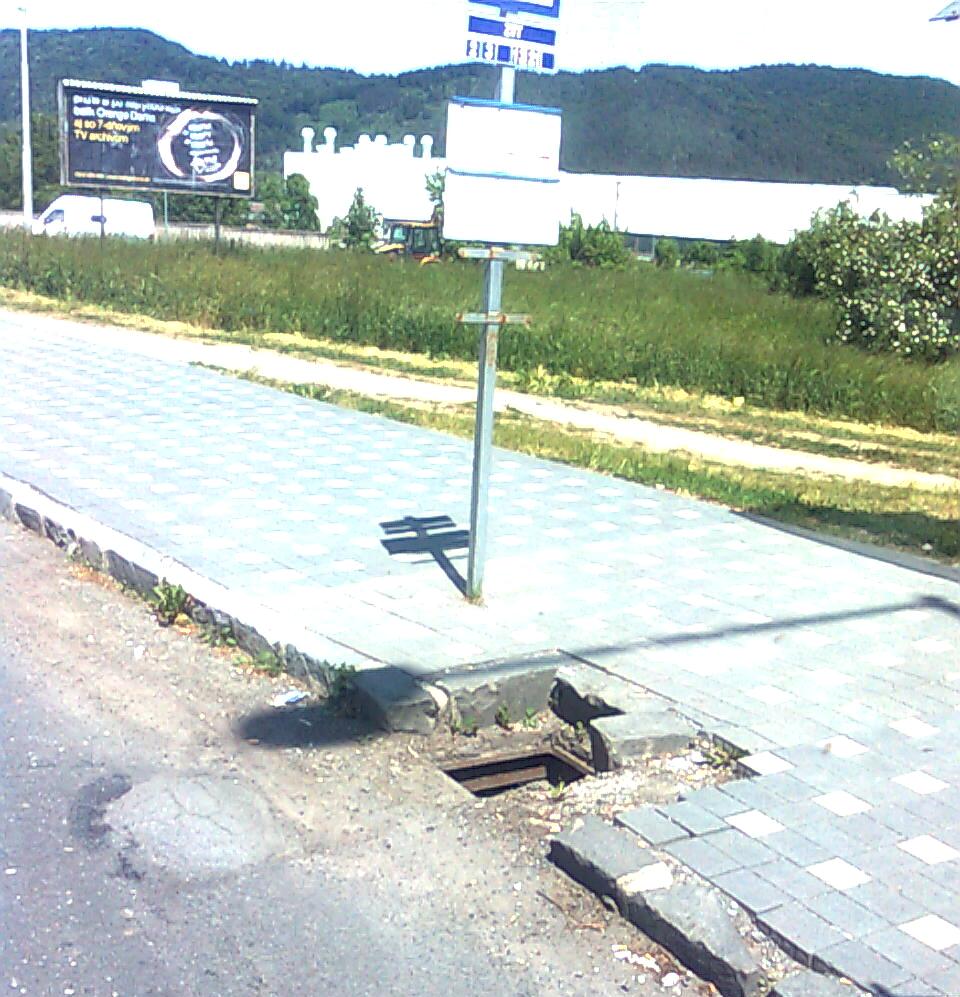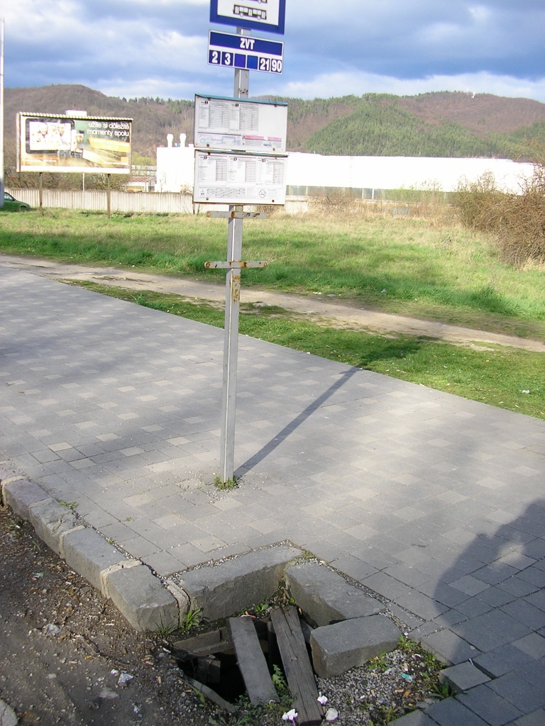 „Zachytil som na Vašich stránkach, že viete expresne rýchlo dopĺňať poklopy na kanáloch. Tak som zvedavý, či sa Vám to podarí aj na zastávke ZVT smer mesto, kde už od 25.5.2012 chýba poklop. Po nahlásení Mestskej polícii sa niekto zmohol akurát na to, že miesto prikryl paletou. Lenže aj tá už „odcestovala“. A tak diera stále ohrozuje všetkých, ktorí si chcú pozrieť odchody spojov alebo musia preskakovať ponad dieru, aby nastúpili do autobusu,“