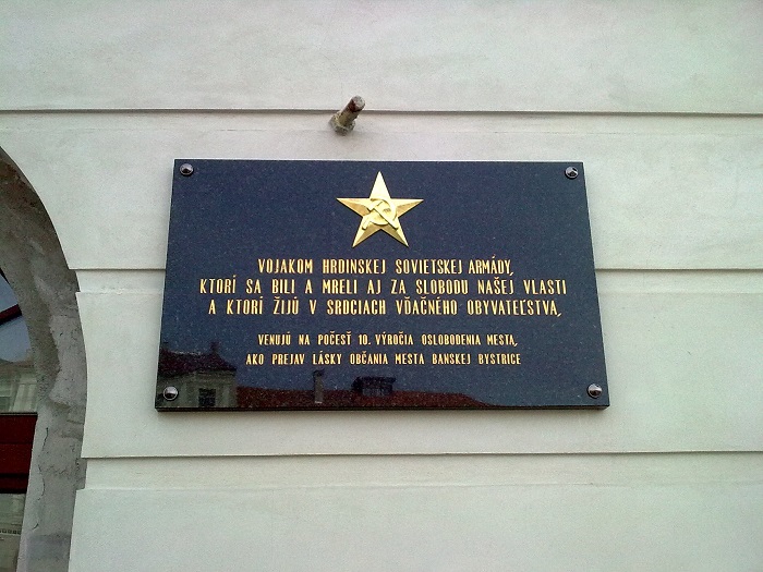 „Pamätná tabuľa venovaná vojakom Červenej armády je spomienkou na dôležitý dátum v dejinách nášho mesta – 25. marec 1945, kedy bola Banská Bystrica oslobodená jednotkami 4. rumunskej armády a 40. sovietskej armády spod nacistickej nadvlády. Preto je zároveň mementom, ktoré nám pripomína, aké dôležité je vážiť si hodnotu ľudských práv a nikdy v budúcnosti nedopustiť ich akékoľvek oklieštenie. Primátor mesta rozhodol o umiestnení pamätnej tabule venovanej vojakom Červenej armády v samotnom interiéri historickej budovy Radnice, kde bude vystavená na čestnom mieste na 1. podlaží budovy, kde sa zároveň nachádza kancelária primátora v ktorej prijíma oficiálne návštevy. Preto je uvedený priestor dôstojným miestom na osadenie tejto pamätnej tabule.“